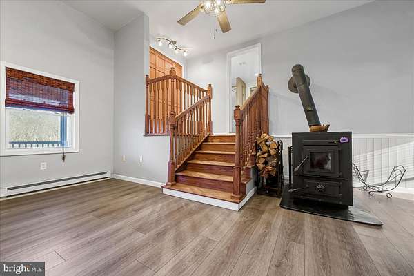 - Ceiling Fan(s), Combination Kitchen/Dining, Family Room Off Kitchen, Pantry, Tub Shower Bathroom, Walk-In Shower Bathroom, Wood Stove