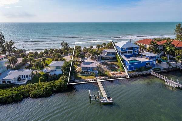Double your pleasure with two beaches and one extraordinary Gulf-to-Bay opportunity on exclusive Casey Key. This rare .58-acre waterfront parcel spans from the Gulf to Blackburn Bay, offering approximately 85 feet of private Gulf frontage plus a newly expanded sandy shoreline along the bay--creating a truly unique dual-beach setting.