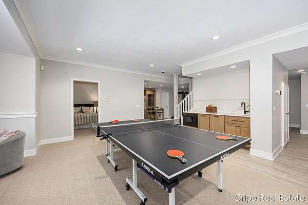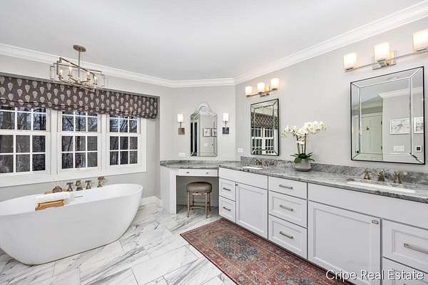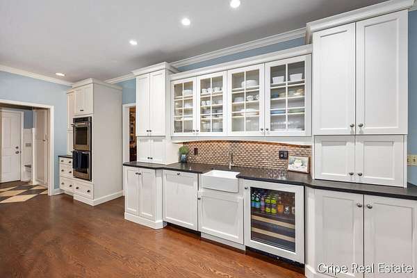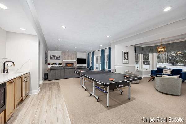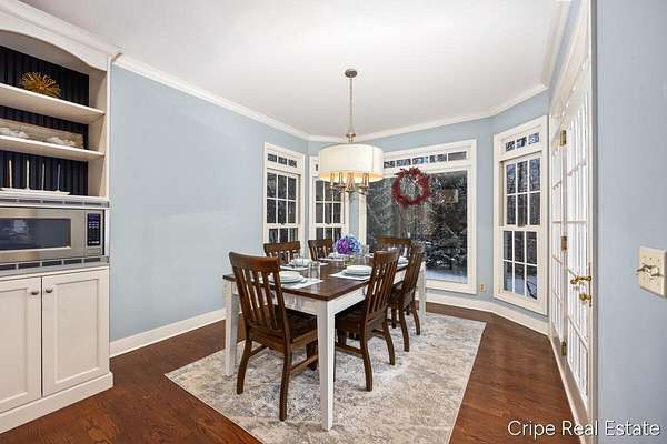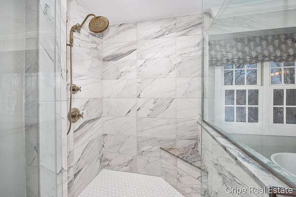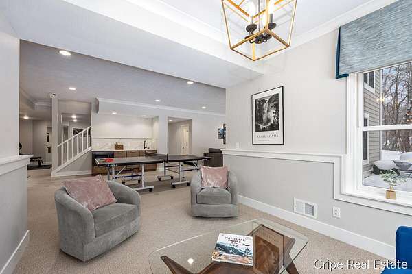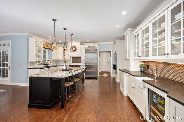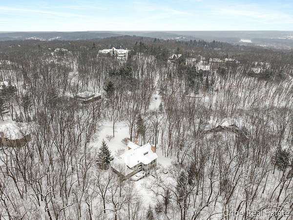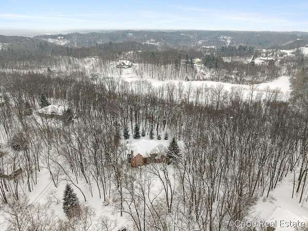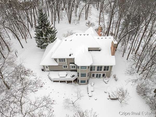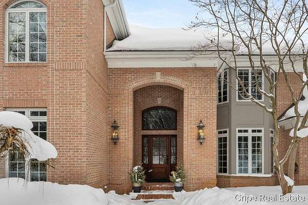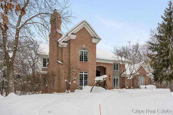 Discover Catamount - the pinnacle of luxury living in Ada's most coveted gated community. Situated on 1.6 pristine wooded acres, this traditional estate offers a rare blend of privacy and modern sophistication. The heart of the home is a true Chef's kitchen, anchored by a massive center island, custom Wood-Mode cabinetry, and a professional-grade Wolf rangetop. Whether hosting formal dinners in the elegant dining room or retreating to the office, the flow is effortless. The great room serves as the home's centerpiece, bathed in natural light and views of the woods. The upstairs primary suite is a sanctuary of its own, featuring a spa-caliber bath. The upstairs also features a second guest suite w/private bath, 2 add'l bedrooms and full bath. The walkout lower level defines luxury entertaining, complete with a high-end wet bar featuring a SubZero wine refrigerator and Bosch appliances. Bedroom, full bath, game room and flex room finish this level. 3 stall garage and circle driveway