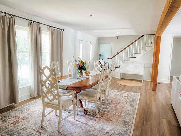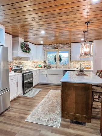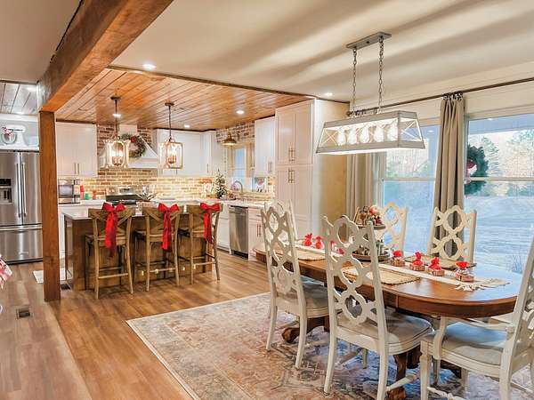 Beautiful estate with modern farmhouse on 28+/- acres! The home has been recently renovated with board & batten siding, new lighting, flooring & paint throughout. Features include open floor plan, gorgeous kitchen with appliances (full 2nd kitchen in the basement) 7 bedrooms & 4.5 baths (including basement). The land features 20+/- acres mature hardwood, small private pond, new river rock landscaping, above ground pool with deck & private setting. There's a 30x40 metal shop with 3 horse stables, lean-sheds, making this ideal for horses, equip storage, or hobby farm. The property offers an abundance of wildlife, perfect for nature enthusiasts & hunters! Convenient location! Buyer to verify all information.