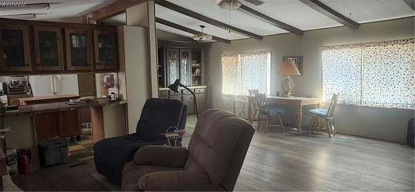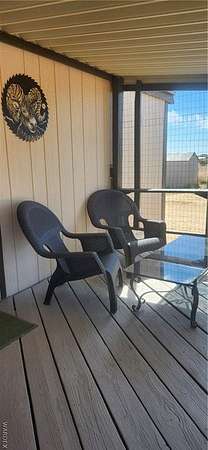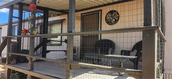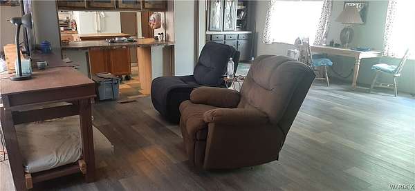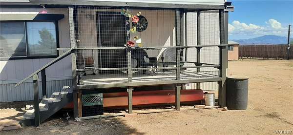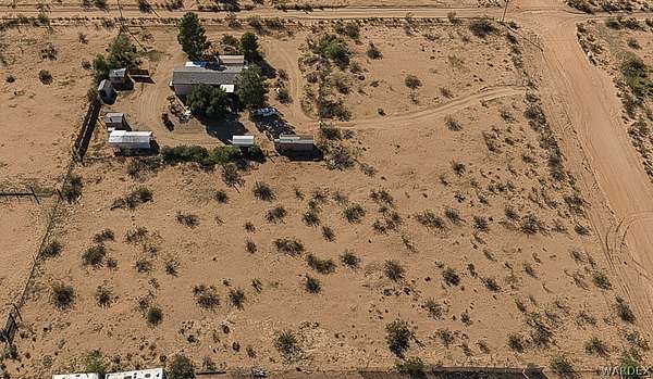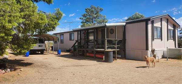 Quiet country living on 2.8 acres with the convenience of city water. Located on a desirable corner lot, just off paved Verde Road and county maintained Bolsa Drive Home has a specious feeling, vaulted ceilings with beams. Split floor plan. Home has 6" wall insulation for cost saving utility bill. Front porch faces west to look out to our beautiful Arizona sunsets at the Black Mountains, Back porch faces East toward the Cerbat mountains, Mature trees in front/back yard. Entire acreage is chain link fenced with 3 gates. Three 1 car carports and 5 sheds on property for ample storage. 2 RV 30 amp. hookups. Pet friendly face with all floors either vinyl/plank and easy to clean.