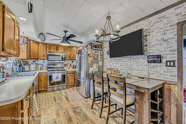 Welcome to this charming Cape Cod in the desirable North Pocono School District, featuring a brand-new roof completed in June 2025 on the home, detached two-car garage, separate one-car garage, and shed -- offering exceptional value and peace of mind from day one. Situated on a beautiful 1.5-acre square lot in Spring Brook Township, this well-maintained 1.5-story home provides space, privacy, and thoughtful updates throughout.The private blacktop driveway with turnaround offers ample off-street parking and easy access. Inside, you'll find durable LVP laminate flooring, vinyl replacement windows, and a renovated full bathroom (2023). The home features a spacious dining room, eat-in kitchen, and three propane fireplaces that add warmth and character.Oil hot water baseboard heat (furnace replaced in 2019) keeps you comfortable in winter, while window A/C units help during the summer months. Additional updates include a new hot water heater (2019), updated electric with an upgraded electrical panel (2019), new well pump (2022), and stainless steel refrigerator, stove, dishwasher, and microwave (2022). The home is also wired for a generator, adding convenience and preparedness.The septic system has been regularly maintained. The concrete block foundation and basement (with interior entry from the living room) provide additional storage and utility space. Attic storage is accessible from both upstairs bedrooms for even more practicality.Enjoy the beauty of 1.5 acres -- perfect for outdoor gatherings, gardening, recreational space, or simply relaxing and taking in the peaceful surroundings.Flexible showing times available. Financing options negotiable. Come experience the comfort, space, and updates this Spring Brook Township property has to offer!