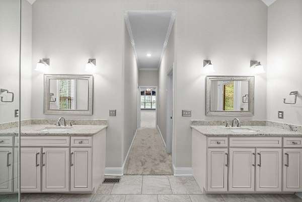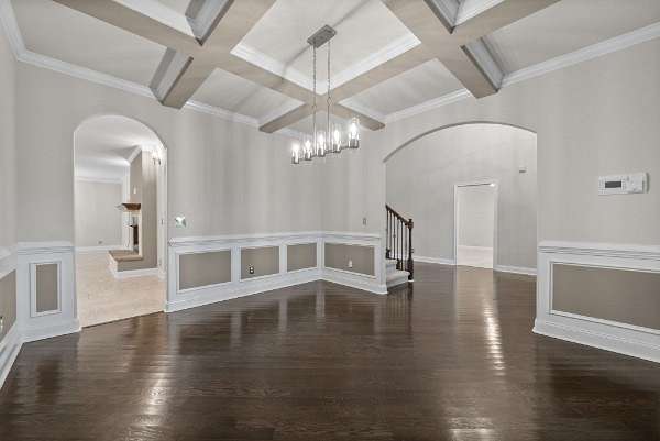 The SPACIOUS KITCHEN is a true highlight, offering GRANITE COUNTERTOPS, STAINLESS STEEL APPLIANCES, a FARMHOUSE SINK, and a POT FILLER above the stove, combining STYLE with everyday convenience. Just off the kitchen, you’ll find a FORMAL DINING AREA, perfect for hosting gatherings.