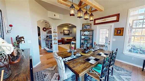 This stunning 3,498 square foot home(per county records) offers the perfect blend of comfort, space, and country charm-just 5 miles from town. Built in 2007, the property features 4 bedrooms, 3.5 baths, and a 2-car garage, along with a host of desirable amenities. Inside, you'll find new hardwood floors, a cozy fireplace, and generous living spaces designed for both relaxation and entertaining. A cellar provides excellent storage and safety. Step outside to your own private retreat: an inground pool, beautiful back porch/deck area, and fully fenced acreage suitable for horses with pond access. It's the ideal setup for anyone seeking space, privacy, and functionality. Homes on the east side of Ada rarely come available-don't miss this exceptional property! Seller is offering assistance toward an interest rate buy-down! This is a great opportunity for buyers looking to lower their monthly payment and increase long-term affordability. Ask your lender how a temporary or permanent rate buy-down could benefit you.