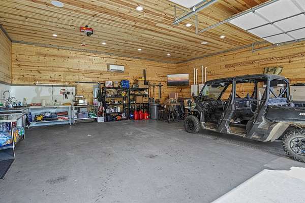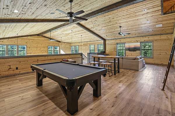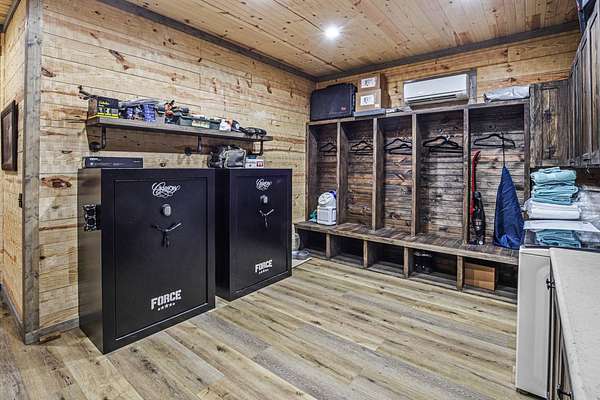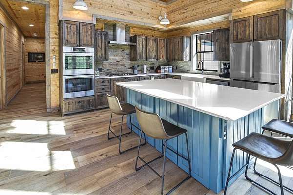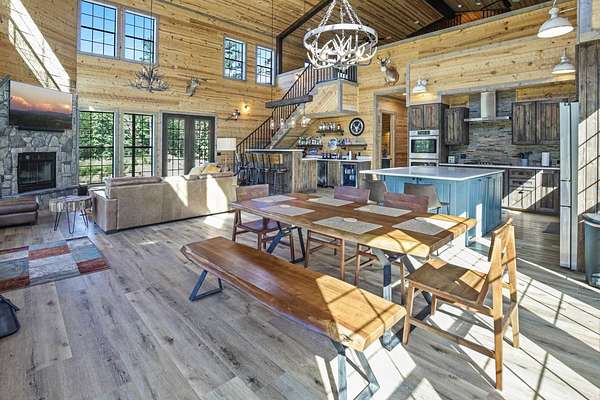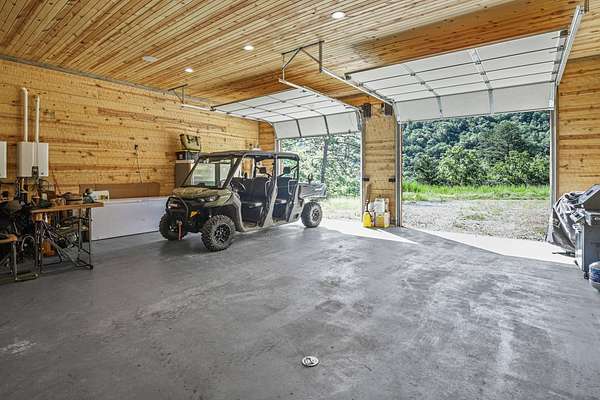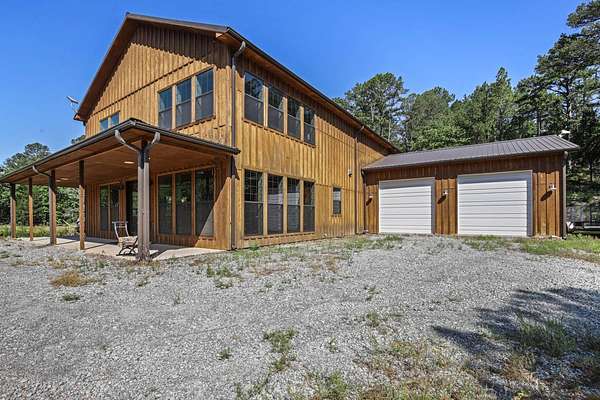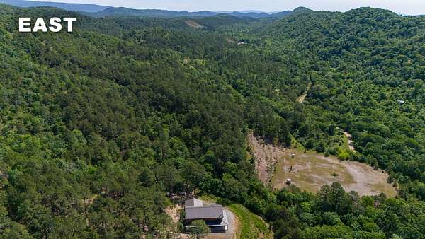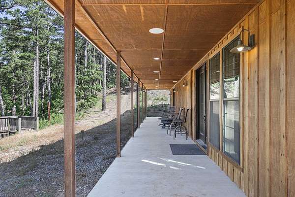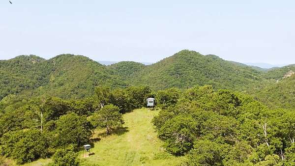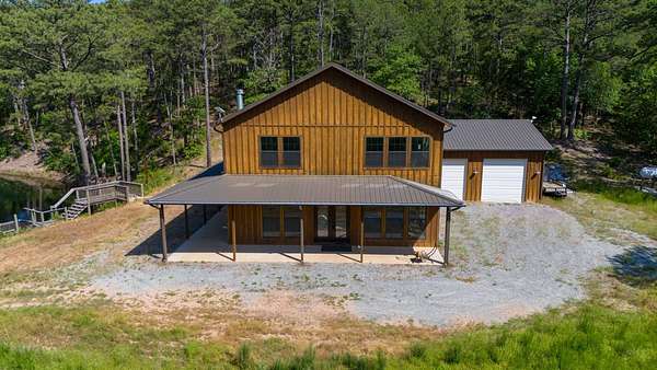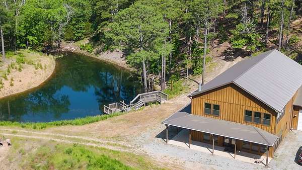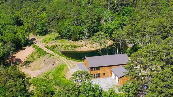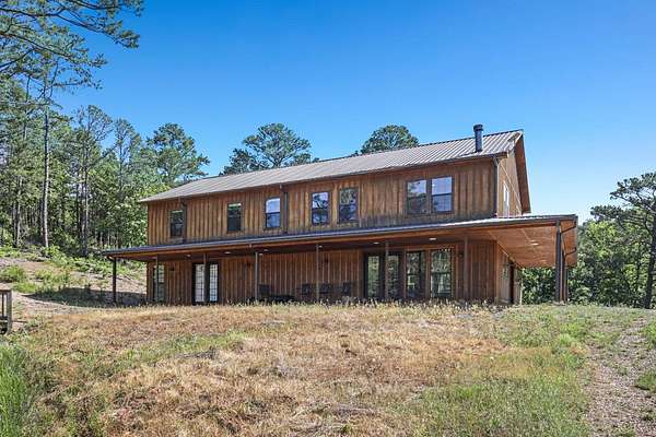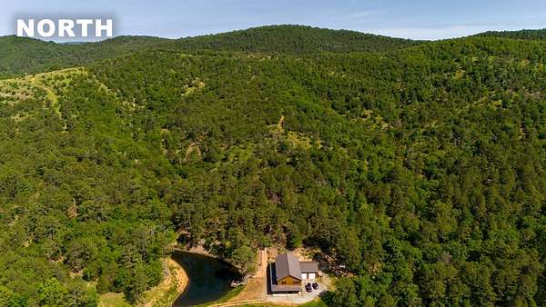 Escape to your private sanctuary nestled in the serene Kiamichi mountains of Southeast Oklahoma. This custom-built, 3,500-square-foot Barndominium Lodge, completed in 2023, offers the perfect blend of rustic charm and modern amenities on 142 acres of prime hunting land. Designed with comfort and entertainment in mind, the lodge features four spacious bedrooms accommodating up to 14 guests comfortably and three full bathrooms with double sink vanities, and a walk-in showers, this luxurious setup will make your guest feel right at home. Natural light pours through the large windows, highlighting the knotty pine custom woodwork throughout the home. The open concept living area centers around a stunning rock fireplace that can be fueled by wood or propane, creating a warm and inviting atmosphere. An upstairs game room and loft overlook the expansive living area below, offering a perfect space for guests to relax and unwind. The fully equipped kitchen is a chef's dream, boasting quartz countertops, a propane cooktop, double wall ovens, a farmhouse sink, a large walk-in pantry, and a center island for gathering and meal preparation. An additional fully stocked bar provides extra entertainment space for guests. Step into the large mudroom which includes two large gun safes with private hunting lockers for each guest. The oversized, climate-controlled two-car garage, featuring a built-in meat processing workstation, to process that trophy game along with two standalone freezers, and an 8-foot-deep freeze. The lodge is fully furnished with all new furniture and equipped with nine mini-split zones, ensuring maximum comfort in every room. A 500-gallon propane tank, 2 tankless hot water heaters, Generac generator, and underground utilities professionally installed by Kiamichi power provide reliable energy, while Starlink internet keeps you connected. The well and pump house are easily accessible and spacious enough to store outdoor tools, a lawnmower, or a four-wheeler. A safe room adds an extra layer of security. For hunting enthusiasts, this property is a true haven. Located in the Box Springs area, known for its abundant springs and water sources, the varied terrain attracts whitetail deer, black bear, turkey, wild hogs and quail. ATV trails throughout the entire property allows easy access to four elevated Red-Neck hunting blinds, and a double tree stand, feeders at each location. A 3-ton corn/grain wagon allows you to fill existing feeders at each location easily. This private and secluded retreat offers a perfect balance of outdoor adventure and peaceful living in one of Oklahoma's most picturesque locations.