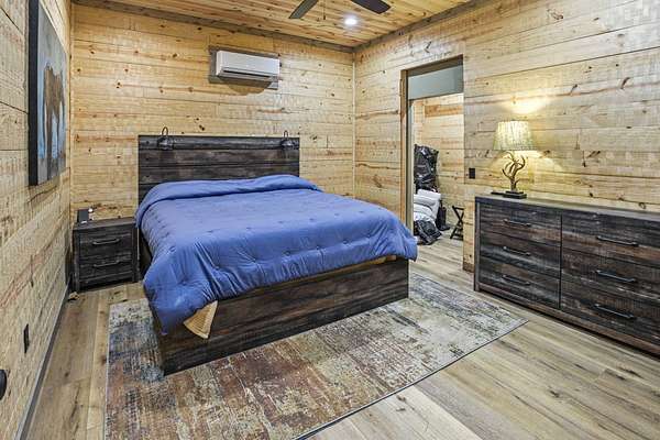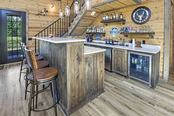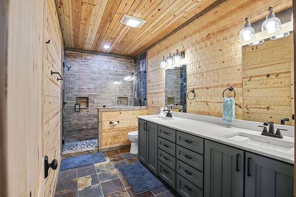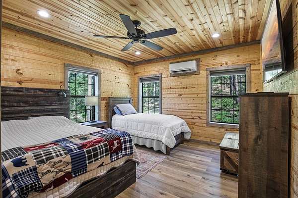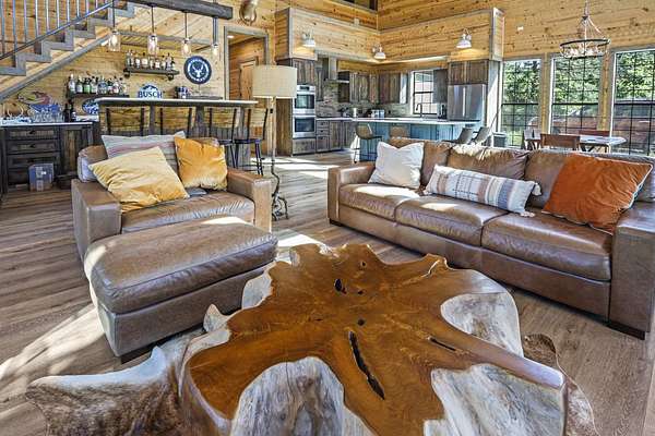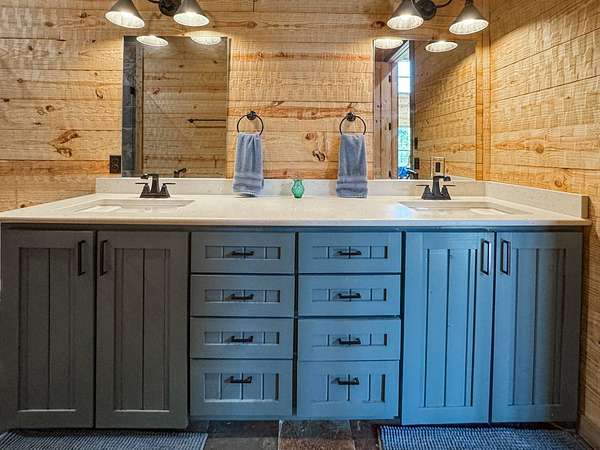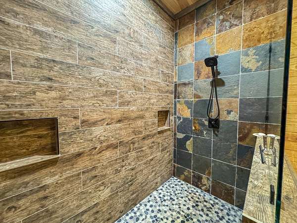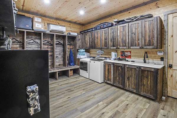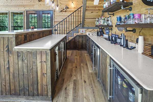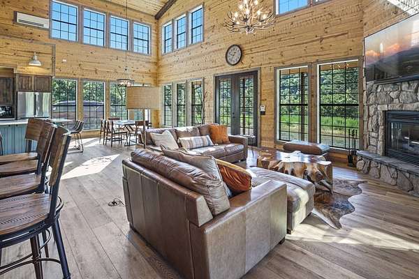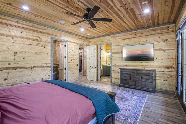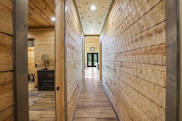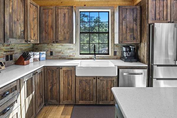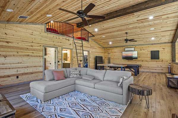 Escape to your private sanctuary nestled in the serene Kiamichi mountains of Southeast Oklahoma. This custom-built, 3,500-square-foot Barndominium Lodge, completed in 2023, offers the perfect blend of rustic charm and modern amenities on 142 acres of prime hunting land. Designed with comfort and entertainment in mind, the lodge features four spacious bedrooms accommodating up to 14 guests comfortably and three full bathrooms with double sink vanities, and a walk-in showers, this luxurious setup will make your guest feel right at home. Natural light pours through the large windows, highlighting the knotty pine custom woodwork throughout the home. The open concept living area centers around a stunning rock fireplace that can be fueled by wood or propane, creating a warm and inviting atmosphere. An upstairs game room and loft overlook the expansive living area below, offering a perfect space for guests to relax and unwind. The fully equipped kitchen is a chef's dream, boasting quartz countertops, a propane cooktop, double wall ovens, a farmhouse sink, a large walk-in pantry, and a center island for gathering and meal preparation. An additional fully stocked bar provides extra entertainment space for guests. Step into the large mudroom which includes two large gun safes with private hunting lockers for each guest. The oversized, climate-controlled two-car garage, featuring a built-in meat processing workstation, to process that trophy game along with two standalone freezers, and an 8-foot-deep freeze. The lodge is fully furnished with all new furniture and equipped with nine mini-split zones, ensuring maximum comfort in every room. A 500-gallon propane tank, 2 tankless hot water heaters, Generac generator, and underground utilities professionally installed by Kiamichi power provide reliable energy, while Starlink internet keeps you connected. The well and pump house are easily accessible and spacious enough to store outdoor tools, a lawnmower, or a four-wheeler. A safe room adds an extra layer of security. For hunting enthusiasts, this property is a true haven. Located in the Box Springs area, known for its abundant springs and water sources, the varied terrain attracts whitetail deer, black bear, turkey, wild hogs and quail. ATV trails throughout the entire property allows easy access to four elevated Red-Neck hunting blinds, and a double tree stand, feeders at each location. A 3-ton corn/grain wagon allows you to fill existing feeders at each location easily. This private and secluded retreat offers a perfect balance of outdoor adventure and peaceful living in one of Oklahoma's most picturesque locations.