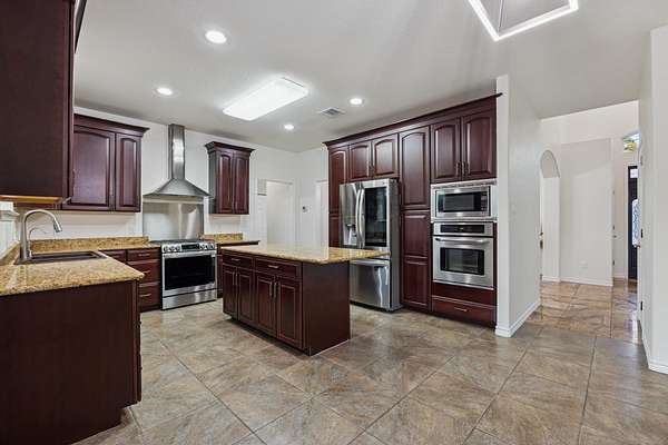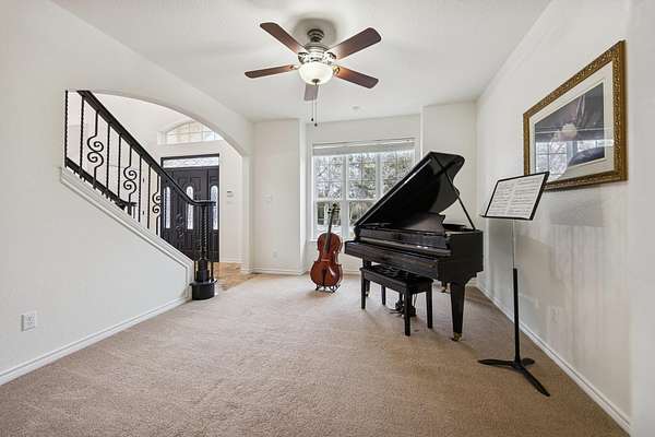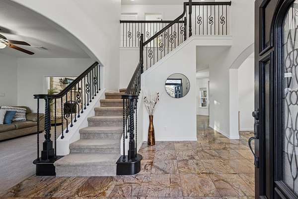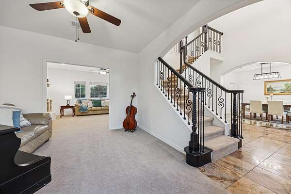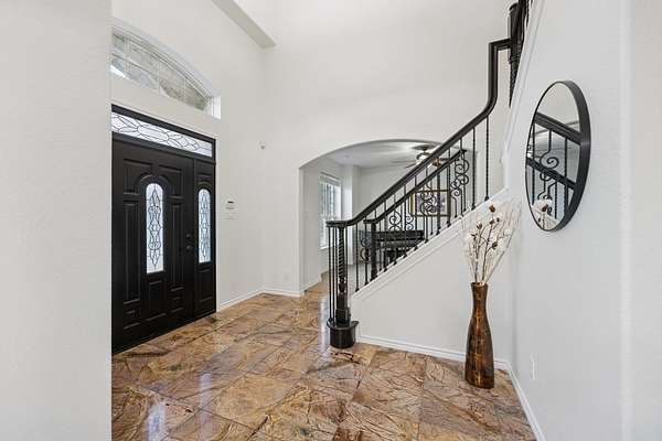- Built-In Features, Ceiling Fan(s), Ceiling-High, Double Vanity, Eat-In Kitchen, Entrance Foyer, Granite Counters, High Speed Internet, In-Law Floorplan, Interior Steps, Kitchen Island, Multiple Dining Areas, Multiple Living Areas, Open Floorplan, Pantry, Recessed Lighting, Soaking Tub, Two Primary Closets, Walk-In Closet(s), Wired For Data