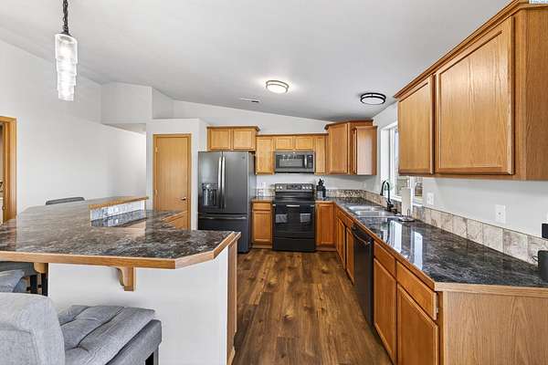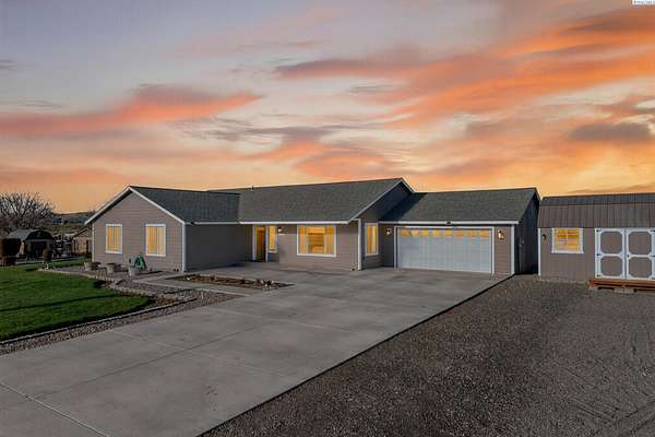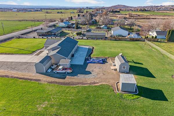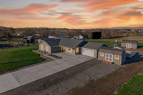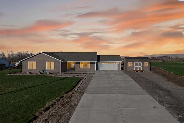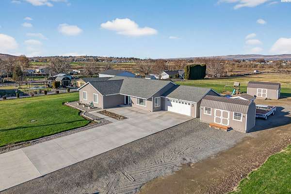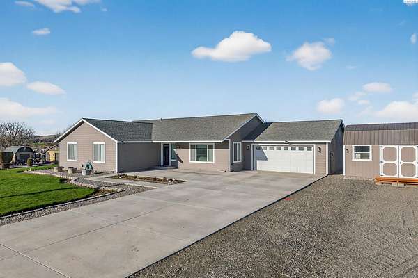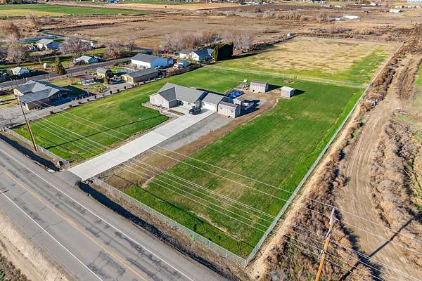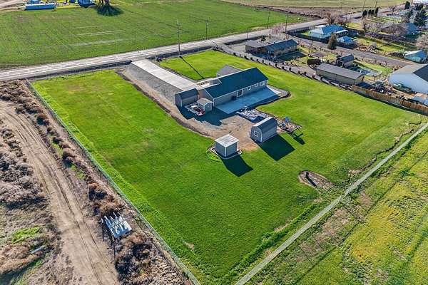 Discover the perfect blend of comfort, convenience, and wide-open space in this beautifully maintained 2012 custom-built Lexar home. Offering 4 spacious bedrooms and 2 bathrooms, this property features an inviting open-concept layout, new luxury flooring, fresh interior + exterior paint, and an expanded paved driveway that leads seamlessly to the road and expanded back patio, looking out to your beautifully manicured lawn. Every detail has been thoughtfully curated to make it a dream property. Step inside to find generously sized bedrooms, bright living spaces, and an effortless flow that makes everyday living and entertaining a breeze. The attached two car garage includes built-in storage, while multiple outbuildings provide endless possibilities. Create a home office, home gym, workshop, small business space, or even transform one into an ADU. Sitting on 4.86 acres, this property gives you room to build, grow, or simply enjoy the peace and privacy of country living. The entire perimeter is fully fenced, and the acreage is equipped with a full sprinkler system on irrigation. Located just the right distance from town, freeway access, and neighbors, this home offers ideal accessibility and location. Immaculately cared for inside and out, all the hard work has already been done for you. Take action on this rare opportunity, homes like this don't come around often. Move-in ready and waiting for its next chapter!