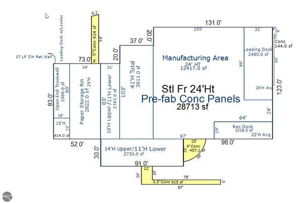 Est $12,351/moSolid Industrial building on 7.16 Acres in Heidbreder Industrial Park. 33,186 sq ft of floor space, but with the existing press removed and the upper level of the Press room filled in, there is an additional 3,811 sq ft of main level production space. 11' ceiling height on lower level and office areas with 24' to 30' height through the balance of the building. Heavy 480 V Three Phase power throughout. Two indoor truck docks with levelers. LED lighting throughout. Hammond and Garfield Roads, providing easy truck access in every direction. Fire suppression throughout including offices. Enough land for additional parking or buildings.