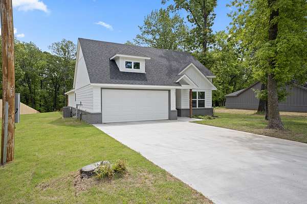 From Hwy 59 S and Har-Ber Rd in Grove go 1 mile West to Rockwood, turn South for 1/2 block, new construction on left.