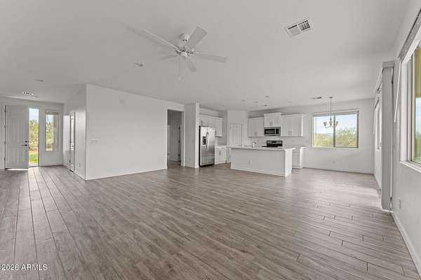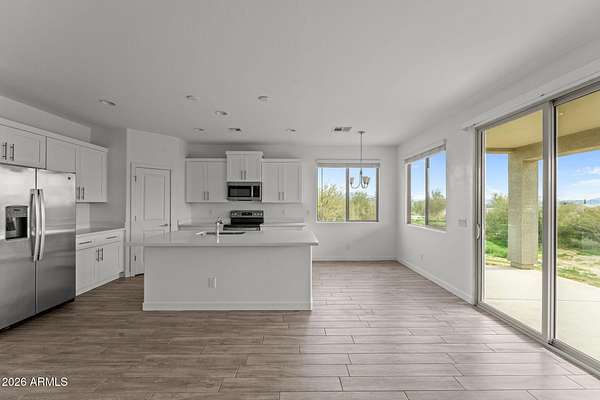 OFFERING Seller/Lender combined paid 2/1 temporary rate buydown with start rates in the 4%'s!! Welcome to this brand new 3 bedroom, 2 bathroom home located in the desirable Rio Verde area. Situated on a full one acre lot with no HOA, this property offers privacy, space, and stunning mountain views in every direction. The home features an open and inviting floor plan filled with natural light throughout. The kitchen is beautifully designed with modern shaker cabinets, stainless steel appliances, a spacious pantry, and a seamless flow into the living and dining areas, making it ideal for both everyday living and entertaining. A sliding glass door leads to a large covered back patio, perfect for enjoying Arizona sunsets and the surrounding desert landscape. The primary suite offers a generous closet and a well appointed bathroom, while two additional bedrooms provide flexibility for guests, a home office, or hobbies. Additional highlights include wood style flooring, ceiling fans, a two car garage, washer and dryer hookups, and thoughtful finishes throughout the home. Enjoy easy access to outdoor recreation including nearby trails, the Verde River, and Tonto National Park, while still being within convenient proximity to shopping, dining, and major roadways. This is a rare opportunity to own a brand new home on a spacious lot with incredible views and no HOA restrictions.
