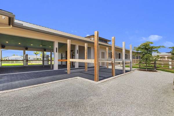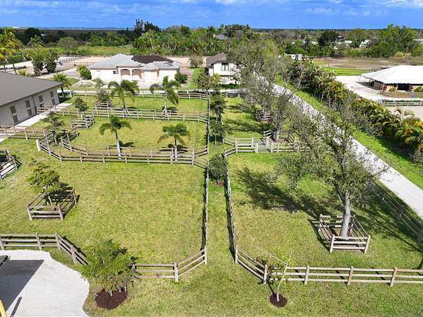 New construction, architecturally impressive 5AC equestrian farm is ready to fulfill your dreams. 14 Stall center Aisle barn with 8 oversized walk-out paddocks,120 by 250 ft Ebb and Flow all weather fully fenced arena and separate lunging ring, completed by a fabulous 1558 sq ft guest cottage, impressive 3 bay garage with second story finished apartment. This exclusive farm offers an approved Wellington land development plan for your dream covered riding arena. The timeline for completed construction of proposed riding arena is a short timeframe. More potential with this amazing property is a 3482 sq ft original house that has been prepped for two creative planned options. (Please see owner remarks in MLS documents.) The exceptional center aisle barn features a comfortable lounge and an