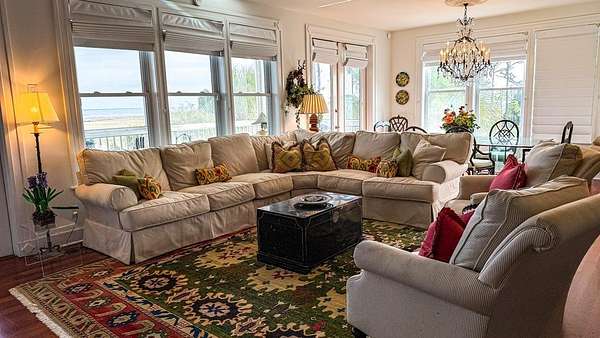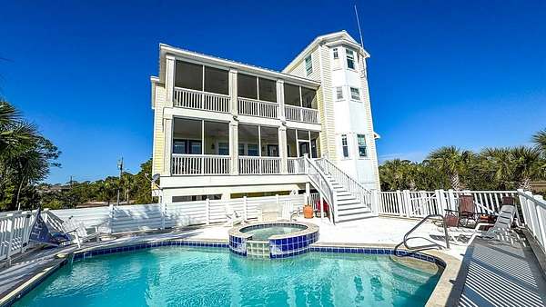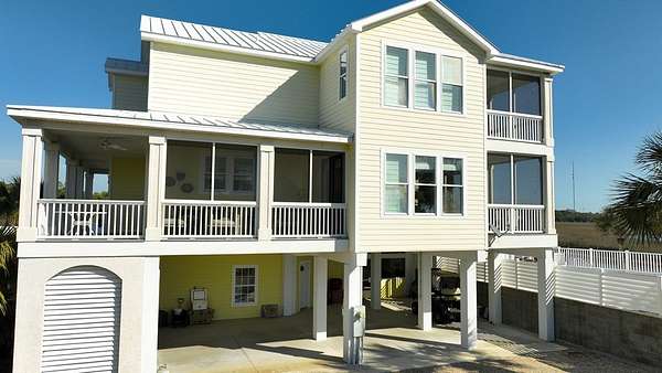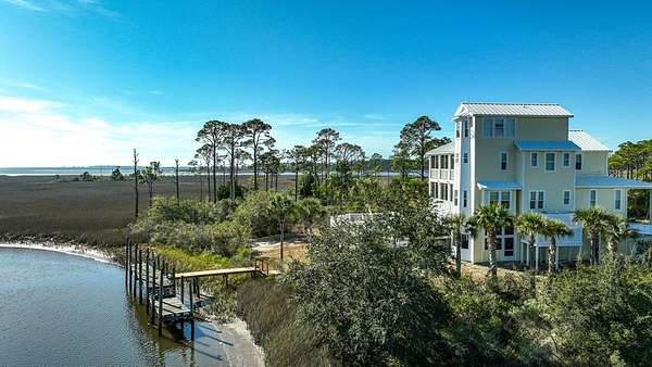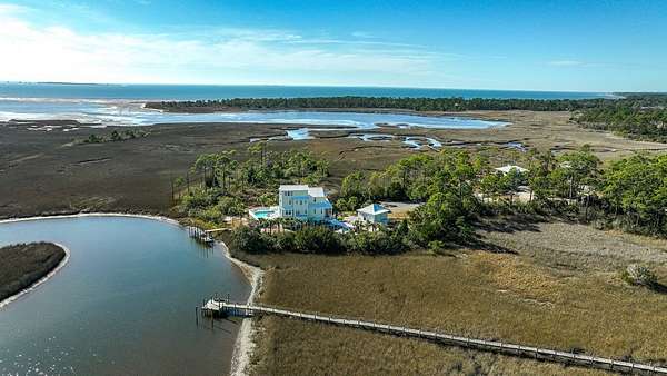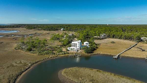 Stunning Estate Home on Poston's Bayou Experience waterfront living at its finest with this exceptional estate offering 140 feet of bayou frontage, complete with a private dock and pool. Situated on 3.94 acres at the end of a quiet street, this property boasts sweeping views of the Carrabelle River, Dog Island, and the Gulf of America. The main residence features 4 bedrooms, 3 full baths, and 2 half baths, with the convenience of an elevator. A separate guest house includes 1 bedroom and 1 bath, perfect for visitors or extended family. All bathrooms have been beautifully remodeled, including a luxurious master bath with a walk-in whirlpool tub and a spacious walk-in shower. The first floor offers an open and inviting living, dining, and kitchen area, with French doors leading to a large covered, screened porch--ideal for entertaining or enjoying coastal breezes. Hardwood floors run throughout the home, complemented by tile in all bathrooms. Additional outdoor living space includes a large screened, covered porch on the second floor, providing even more opportunities to take in the incredible views. This one-of-a-kind waterfront property blends privacy, space, and breathtaking scenery--truly a rare find.