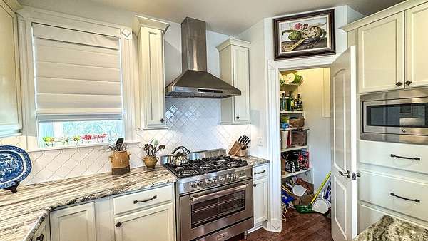 - Bay Window, Breakfast Bar, Built-In Bookcase, Ceiling Crown Molding, Ceiling Raised, Elevator, Fireplace, Fireplace Gas, French Doors, Guest Quarters, Inside Storage, Kitchen Island, Lighting Recessed, Newly Painted, Pantry, Renovated, Shelving, Smoke Detector, Stairs Spiral, Walk-In Closet, Washer/Dryer Hookup, Woodwork Painted