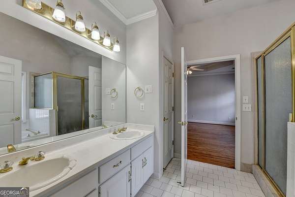 - Double Vanity, In-Law Floorplan, Master On Main Level, Roommate Plan, Separate Shower, Tile Bath, Tray Ceiling(s), Walk-In Closet(s)
