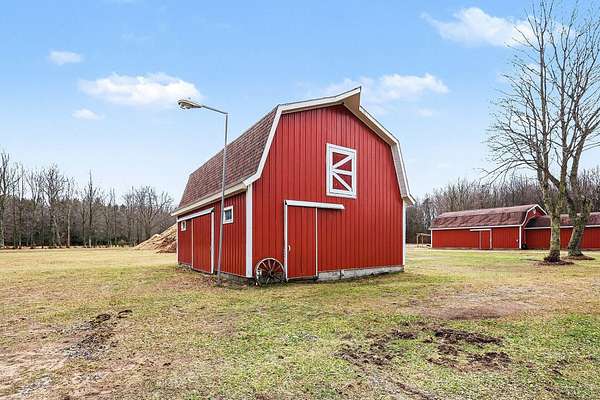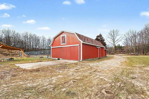 Hard-to-find 18-acre property with exceptional potential and up to four possible splits. This custom-built home offers 3 bedrooms and 1.5 baths, featuring main-level laundry, a masonry fireplace, and a walkout lower level leading to an inground pool. Enjoy outdoor living with a large deck off the dining area and the convenience of an attached oversized garage. The property includes three substantial outbuildings: Outbuilding 1: 28' x 42' heated workshop with natural gas and three garage doors. Outbuilding 2: 28' x 42' with an added upper loft area Outbuilding 3: 26' x 54' building with heated craft room and loft area. A newer pond sits at the back of the property, enhancing the scenic, rolling, wooded landscape. Ideal for a horse dream retreat, this acreage offers endless possibilities. Investors will want to take a look. So many possibilities, keep the home upfront and build your own special place in the back of the land. Seller reserves the right to call for offer deadlines.