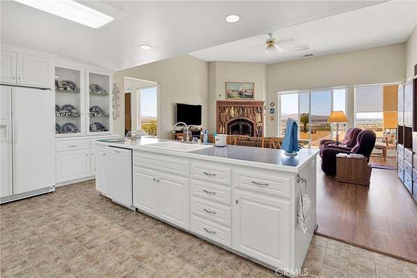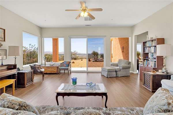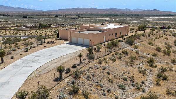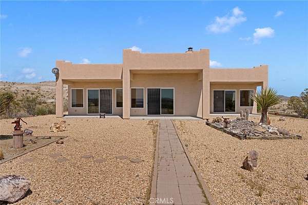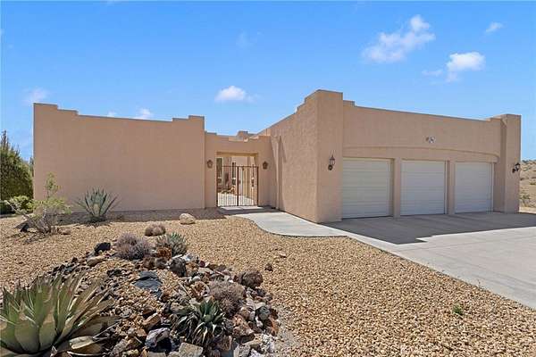 Stunning Santa Fe-style custom estate on 14 acres in Helendale with breathtaking 360° views! This 2,938 sq ft home offers 3 bedrooms, 2.5 baths, plus a detached 480 sq ft casita with full bath—perfect for guests or multigenerational living. Inside, enjoy soaring 12’ ceilings, formal living and dining rooms, and a massive farmhouse-style kitchen that serves as the heart of the home, featuring dual sinks, a large island, and open to the family room for entertaining.