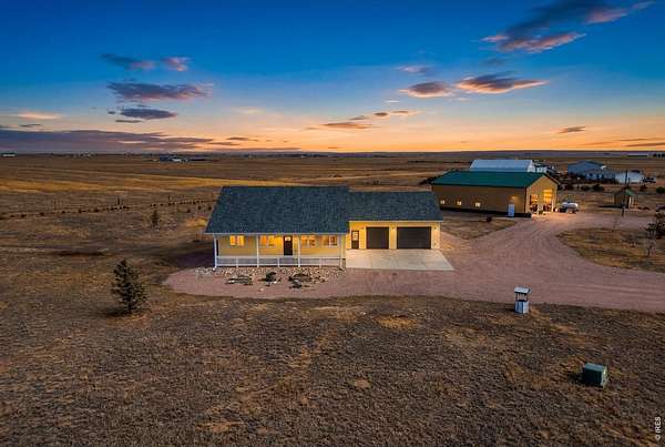 Almost 45 acres, a custom ranch home, and a 40x60 radiant-heated shop - this is the kind of Weld County property buyers wait for. Built in 2013, this home offers five bedrooms, and two primary suites, creating the flexibility so many buyers need for multigenerational living, guests, or a more functional layout. The finished basement adds even more versatility with a large family room and bar, making it an ideal space to gather, entertain, or unwind. A new roof was installed in 2024 for added peace of mind. Beyond the home itself, the property continues to deliver. The attached heated garage offers over 1,000 square feet of space, and the impressive 40x60 shop features another 2,400 square feet, 16-foot walls, a fully finished and insulated interior, and radiant heat - ideal for an RV, equipment, tools, hobbies, or serious project space. Outside, the land is just as compelling. With almost 45 acres of flat, usable ground, an agricultural well, livestock allowed, and no HOA, this property offers the freedom and flexibility that are getting harder to find in Northern Colorado. Add in Rocky Mountain views, wide-open skies, and the privacy that comes with owning acreage, and the result is a property that truly stands apart.If you've been looking for a Colorado ranch home with acreage, a heated shop, and room to really live, this one deserves a closer look.