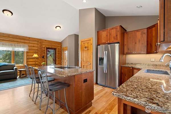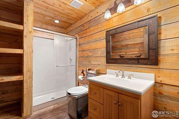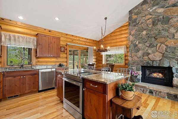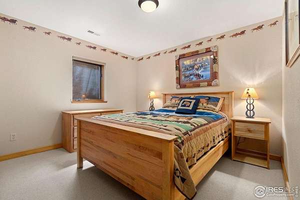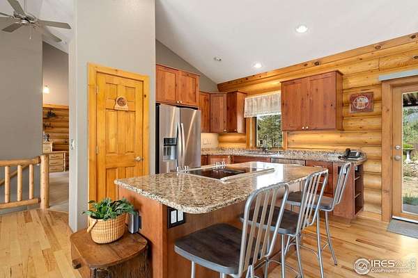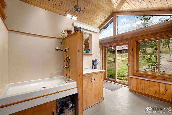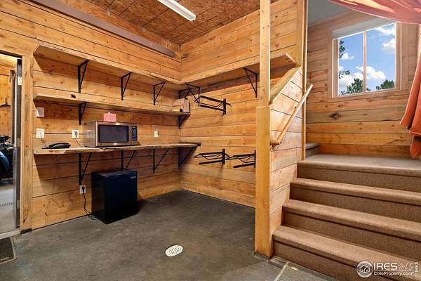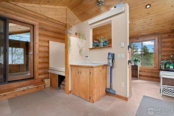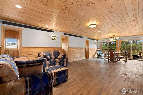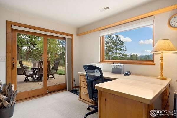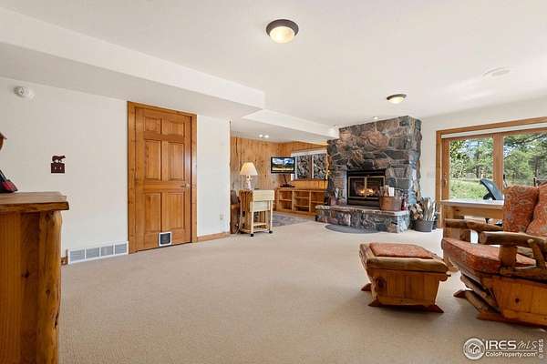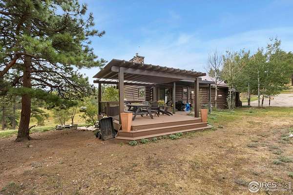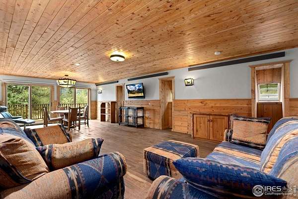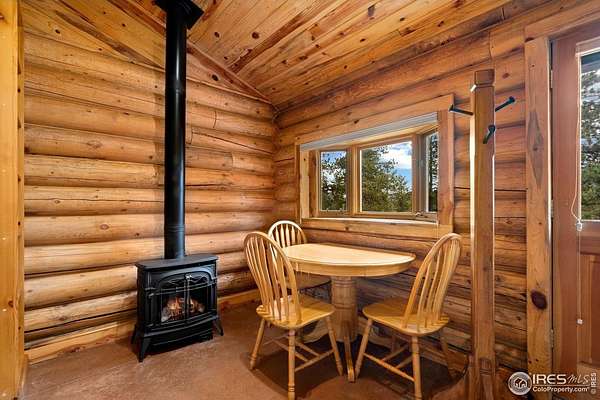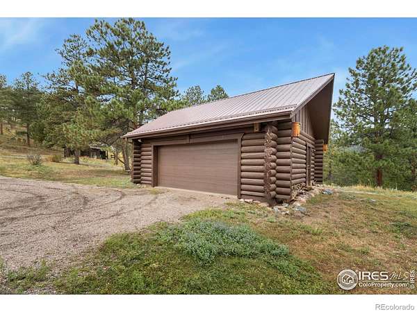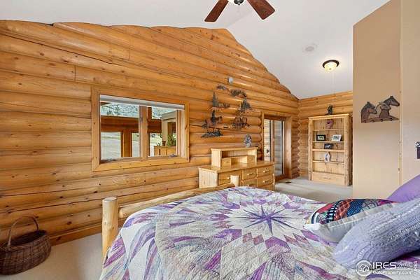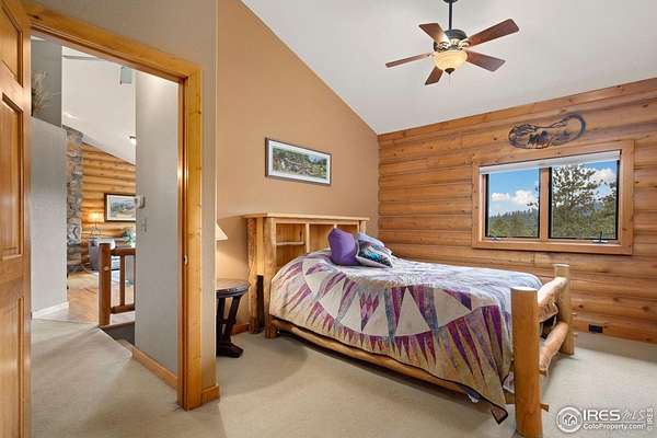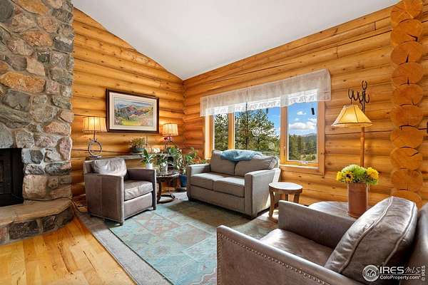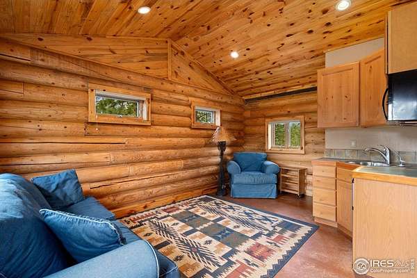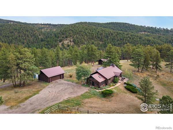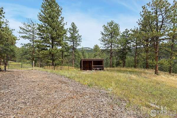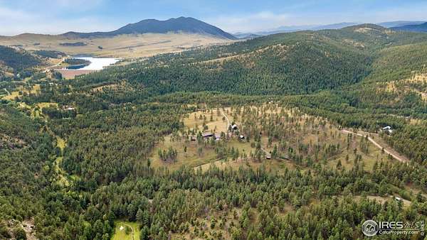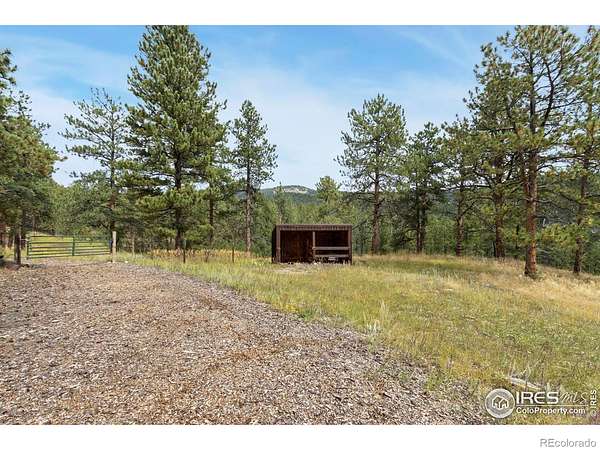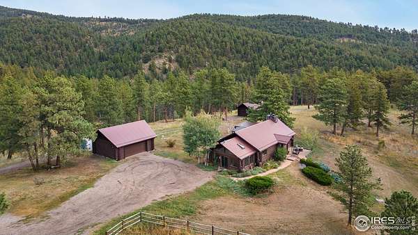Welcome to 16235 County Road 18E - a truly unbelievable 31-acre mountain horse property known as "Back Home Acres." Just 20 minutes from Mariana Butte Golf Course and only 5 minutes from Pinewood Reservoir, this private retreat offers unparalleled access to wakeless water sports, fishing, hiking, and camping, while providing all the peace and seclusion of mountain living. Enter through the electronic gate to find three horse-safe, fully fenced pastures, a hay barn, and a horse barn with a beautifully finished 675 sq ft upstairs great room complete with a 3/4 bath-ideal for guests, a studio, or entertaining. The main log home features 3 bedrooms and 2 baths, a durable metal roof, and a walkout basement. Inside, you'll find a vaulted, open-concept kitchen and living area centered around a cozy stone fireplace, a sunlit primary suite with vaulted ceilings, and a spacious mudroom outfitted with a dog bath and exercise space. The walkout basement adds two additional bedrooms, another full bath, and a bright area perfect for a home office or family room. The property also includes a charming ~400 sq ft studio cabin with a partial kitchenette, a full bath, and a gas heat stove-making it ideal as guest quarters, a creative retreat, or a private home office. Additional amenities include a detached two-car garage and a large dog run currently housing beehives. Surrounded by gently rolling terrain, fire-mitigated trees, and sweeping views, the property is alive with abundant wildlife, birds, and native flora. Located near Ramsey-Shockey Open Space and thoughtfully maintained, this one-of-a-kind mountain estate offers both serenity and versatility-perfectly blending nature, comfort, and convenience.