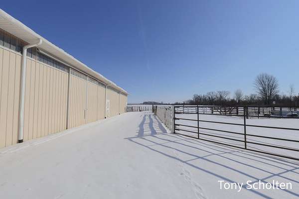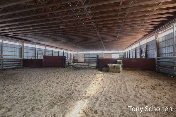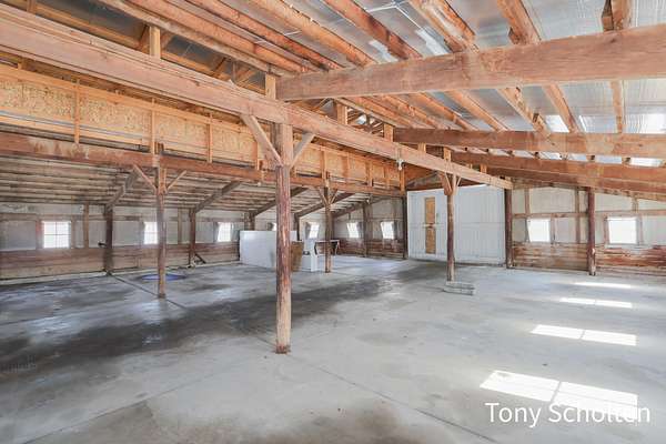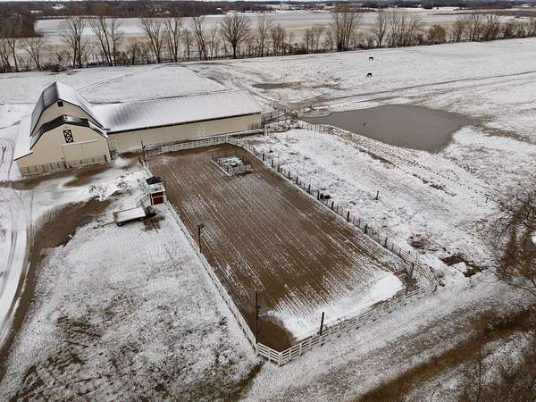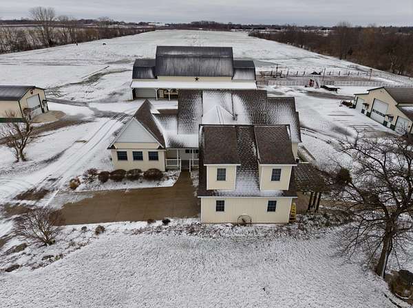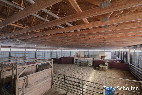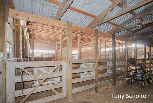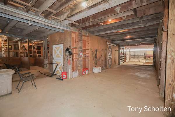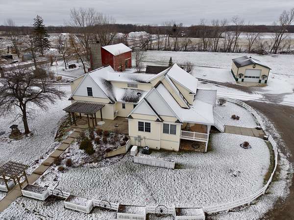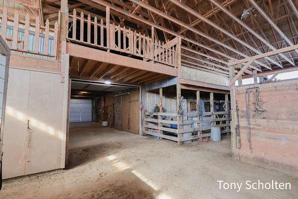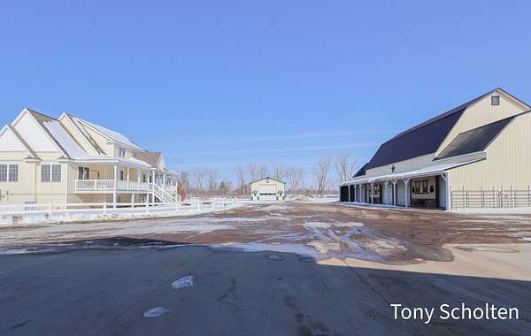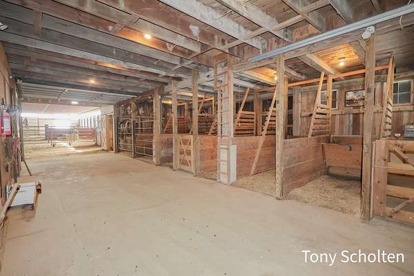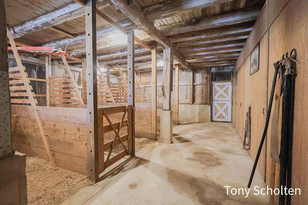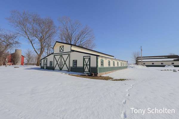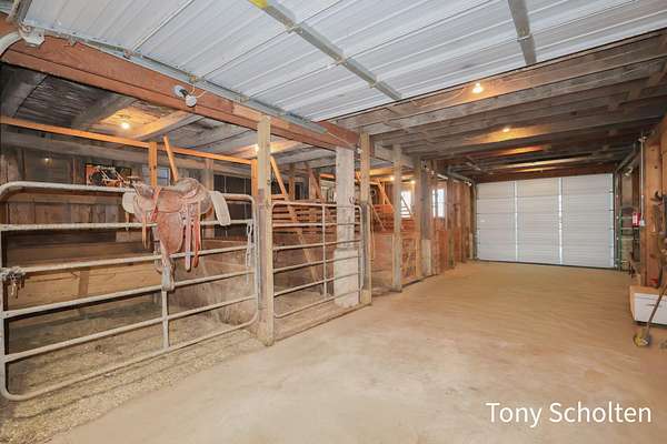 This beloved rural farm-style estate with a remodeled historic residence and extensive outbuildings is ideal for A turnkey equestrian setup, hobby farm with ample storage, or work from home set up providing for multi-use needs. The original home and 40'x60' hay barn were built in 1936 on the west side of 48th Avenue. During the summer of 2008, both structures were moved to this location and set on new foundations. The home underwent an extensive remodel, including a great room addition to the north and a garage with a large bonus room above to the west. The forced air furnace was new in 2025 and It also has a nearly new auto transfer generator in case of power outage. The finished basement includes in-floor heat. The hay barn includes 15 amish built tie stalls with a tack room and was enlarged with 20'x40' extensions and overhead doors, and completely re-sided and reroofed with new steel. In 2016, a 60'x120'x14' enclosed arena was added to the east of the hay barn with 4 box stalls. Also in 2016, the 28'x56'x14' insulated and heated shop (originally built in 2003 on the west side of 48th Avenue) was moved and placed north of the home. The red hay barn is original to the property, measures 32'x60', and received new steel siding and roof in 2008. The South shop, with dimensions of 64'x64', was built in 2008. The center portion is 32'x64'x14' and is insulated and heated, with a bathroom and office in the southwest wing. The remainder of the area is cold storage, 16' wide with 10' ceilings. Southwest of the home is another storage barn (originally a chicken coop) measuring 40'x60'. This well-maintained farmstead offers exceptional outbuilding and pasture space for horses, equipment, vehicles, or hobbies, combined with a warm, updated home featuring modern mechanicals and thoughtful additions. Perfect for hobby farming, equestrian use (with arena and stalls), or those needing substantial storage and shop facilities in a convenient Coopersville location.
