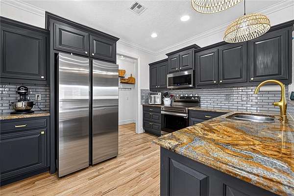 Perfect blend of comfort, space, and lake lifestyle with this beautifully updated home situated on 2.56 acres directly across the street from Beaver Lake. Thoughtfully renovated, the home features refinished hardwood floors, fresh interior and exterior paint, and stylish new light fixtures that create a clean, modern feel. The main level offers 3 BR and 2 baths, including a fully remodeled primary bath. The kitchen is equipped with new appliances. Downstairs you’ll find a spacious bonus area complete, a Mini Kitchen, pool table space, and a dedicated theater room featuring a Polk Audio system—ideal for hosting or relaxing at home. Plus a full bath and Bedroom flex room. Step outside and take advantage of the impressive 30x60 shop, outfitted with three 12x12 garage doors, extensive outlet access, LED lighting, and wired for a 35 AMP camper. Located just 1M from Pebble Beach and 1.75M from Jim’s Trail Public Boat Ramp, this property is a dream for lake enthusiasts with space, updates, and proximity to Beaver Lake!