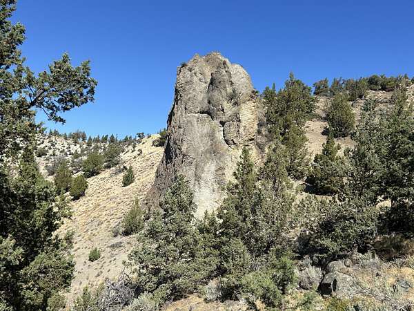 If you are looking for the ultimate privacy in a spectacular setting, this is it. Ideal for that weekend get-away or full time. Nestled on the west side of Black Butte near Mitchell, this property boast 203.6 acres with a cozy home/cabin and a strong developed spring that supplies the house and a year round pond. The geological features of the property are impressive with awe inspiring vertical rock formations and access to the top of Black Butte which lies on the adjacent BLM parcel. There is also a second spring. The home is powered by a state of the art 240 volt solar and battery system. Batteries are about 3 years old with a 20 year transferable warranty. LOP tags available (check with ODFW). There is a 1,000 gallon buried propane tank. This is a must see, off-grid opportunity just 10 minutes from Mitchell, 45 minutes from Prineville and an hour and twenty minutes from Bend.