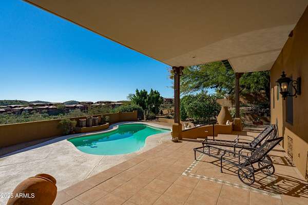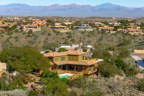 Perched on 1.685 acres of pristine hillside, this refined custom residence offers a rare blend of seclusion, elegance, and breathtaking natural beauty. With commanding mountain views from nearly every angle, this home is designed for buyers who value upscale living with true privacy and tranquility. The spacious primary suite is thoughtfully positioned on the main level, creating a serene retreat with stunning vistas and effortless comfort. Multiple living spaces showcase warm architectural details, while the formal dining room provides an inviting backdrop for intimate dinners or entertaining guests in style. Outdoors, the property transitions into a resort-like sanctuary, a sparkling pool, generous seating areas, and mature desert landscaping come together to offer unparalleled relaxation and entertainment potential. Whether enjoying a quiet sunrise or hosting sunset gatherings, the backdrop is nothing short of spectacular. With striking curb appeal, a dramatic hillside setting, and updates that enhance both beauty and function, this exceptional home delivers the upscale lifestyle and privacy today's discerning buyer is seeking. Experience elevated living, timeless views, and unmatched tranquility, this hillside masterpiece is truly a rare find.