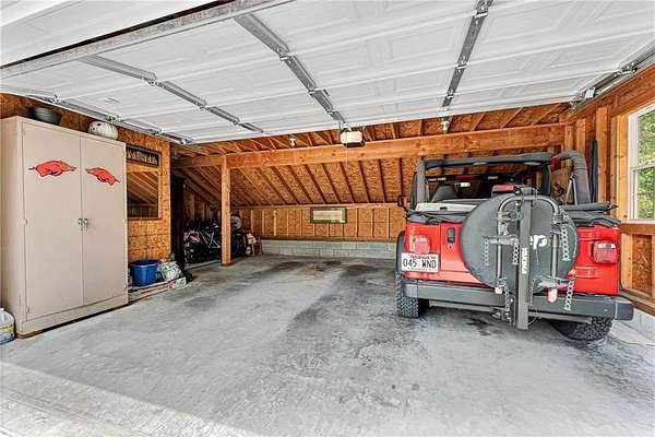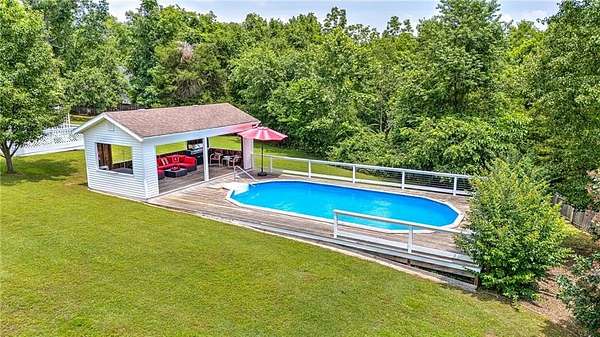 Pull up to your private oasis in Bella Vista, with NO POA RESTRICTIONS! This lovely and pristine property overlooks the 2nd hole on Scotsdale Golf Course. Surrounded by lush trees and so much peace! This New England inspired farmhouse cottage is stunning, with it's two office areas, large and open living room and kitchen and SO much natural light. Spacious and cozy bedrooms with large windows, ample closet space for you, your family and guest. The land is stunning with its pool and open cabana, turn key barn, above ground garden, barn with usable indoor space and firepit. Two covered porches and a pea stone courtyard too! Animals are permitted! Land uses are abundant from hobby farm to a new subdivision to your own special retreat. Imagine living in the center of Bella Vista, with ALL of this! So many options to make this charmer your very own. This one is so special!