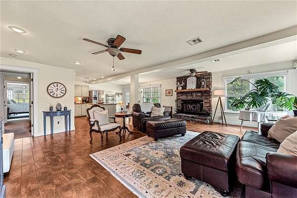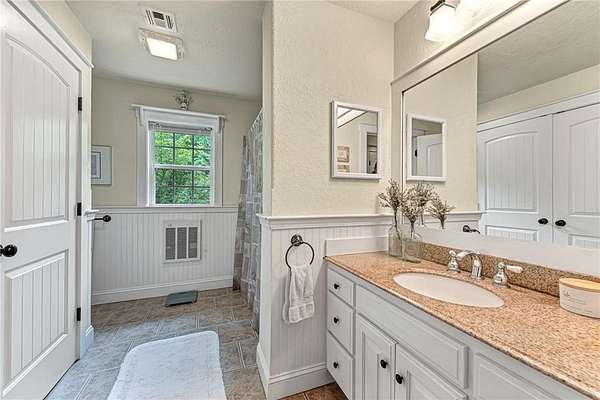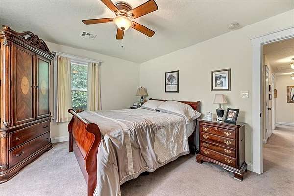 - Attic Storage, Blinds, Ceiling Fans, Eat-in-Kitchen, Fireplace, Granite Counters, Ice Maker Connection, Programmable Thermostat, Smoke Detector, Split Floor Plan, Walk-In Closets
