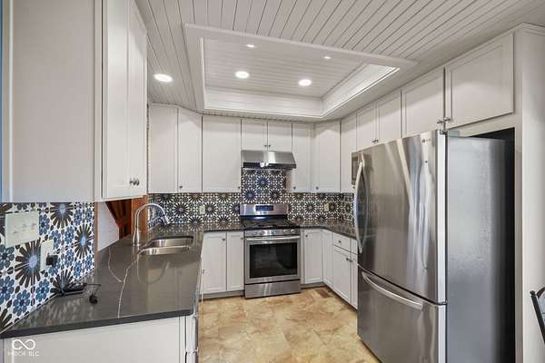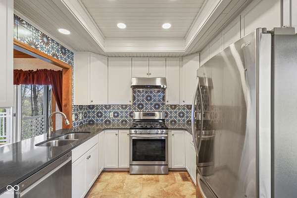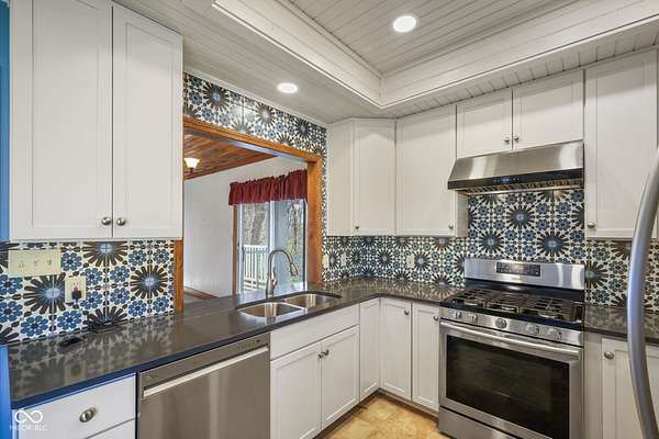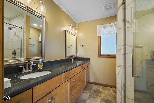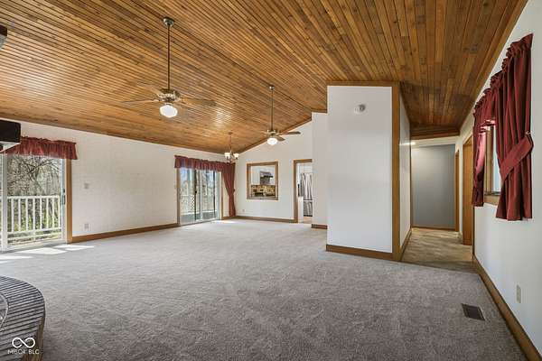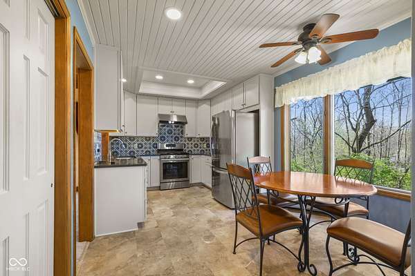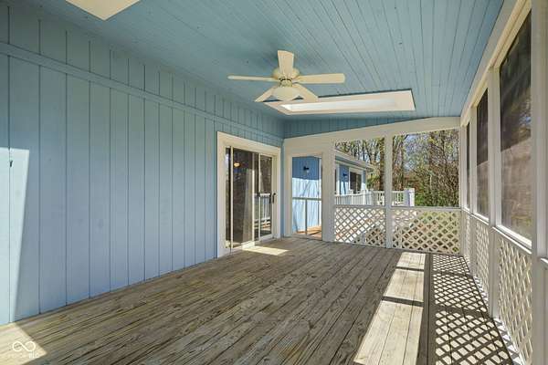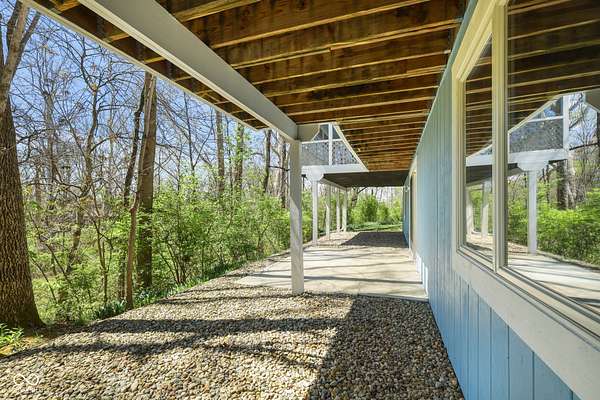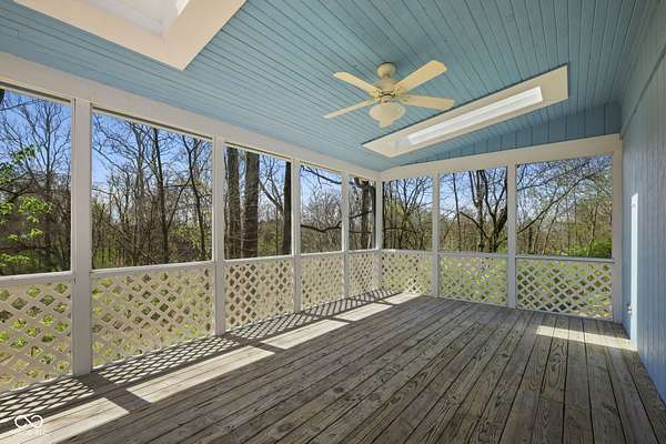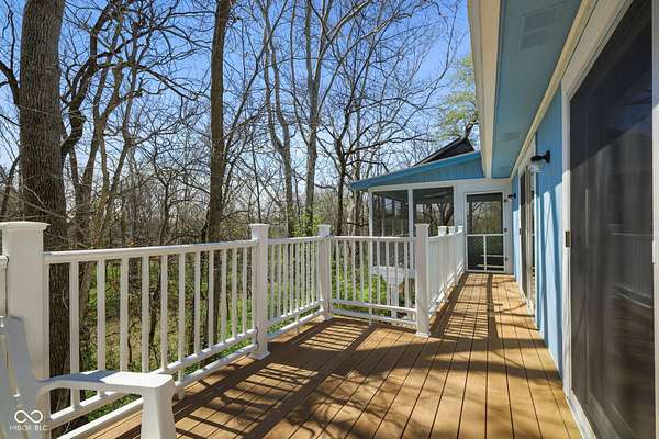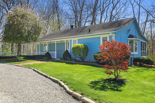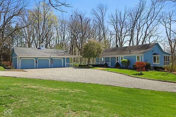 Completely updated ranch with walk-out basement nestled on 3.46 wooded acres, offering a true Brown County feel in the heart of Center Grove. Surrounded by mature trees and natural beauty, this 3-bedroom, 3.5-bath home provides exceptional privacy & peaceful outdoor living. Enjoy serene views from the 12x20 screened-in porch, composite deck off the primary suite, the basement patio or fire pit behind the house -perfect for relaxing or entertaining. Inside, the updated kitchen features white 42" cabinets, ss appliances, backsplash, quartz countertops, & laminate flooring. The GR showcases a stunning vaulted wood ceiling and a masonry gas fireplace, creating a warm & inviting atmosphere. The primary bathroom, downstairs full bath, and main level half bath have all been beautifully remodeled. Additionally, the finished walk-out basement includes two bedrooms, F.R., office/bonus room, & utility rm, offering lots of flexibility. 3 car garage with a full restroom with a large storage area above the garage, finished walls and floors and a built-in workbench. All of this and brand new carpet!
