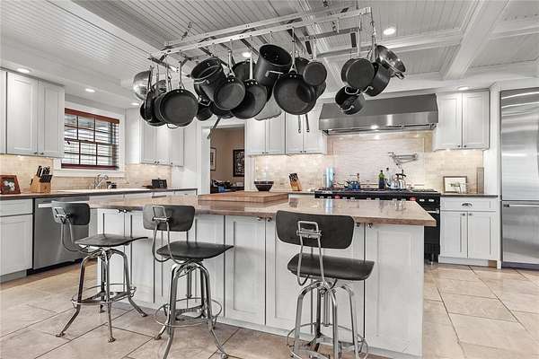 - Dishwasher, Double Oven, Exhaust Fan, Free Standing Range, Gas Cooktop, Oil Water Heater, Oven, Range Hood, Refrigerator, Washer