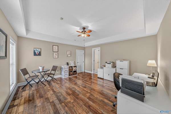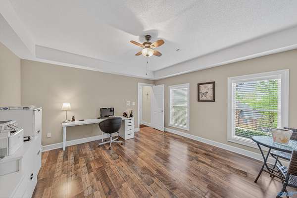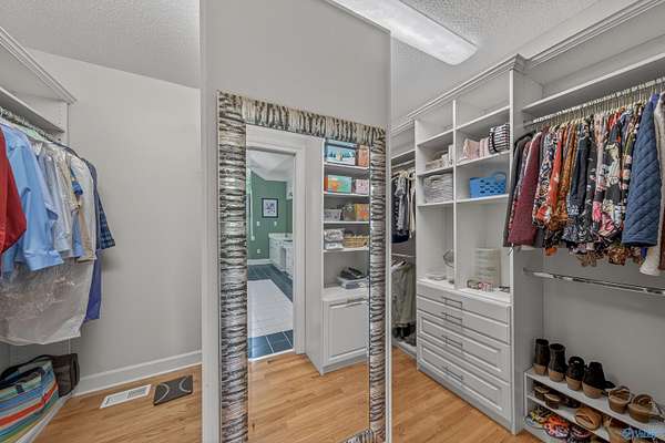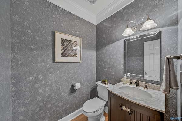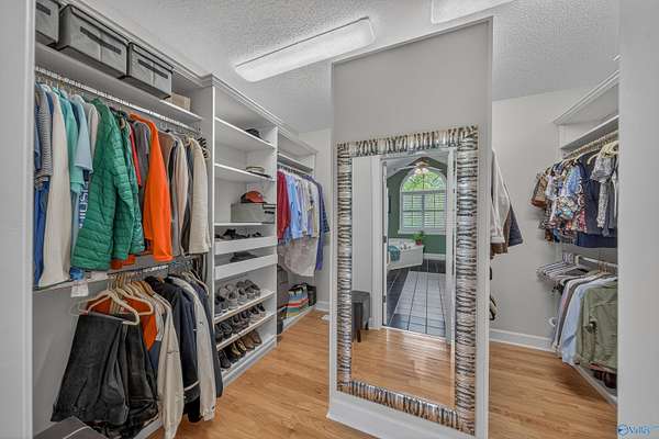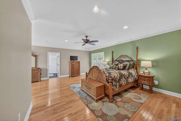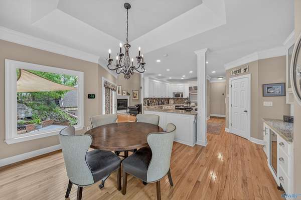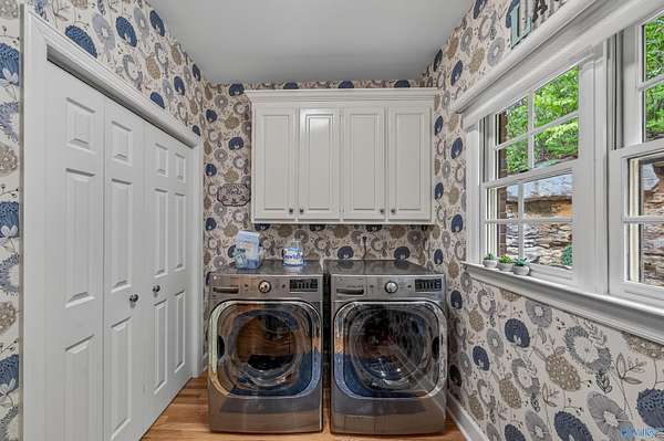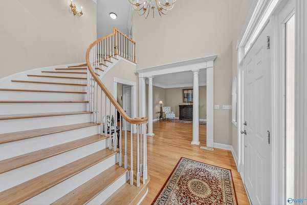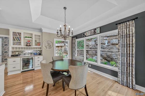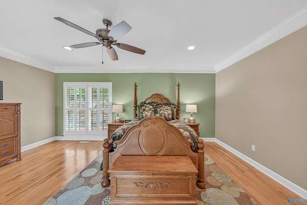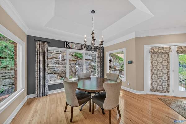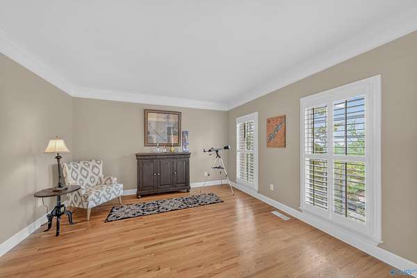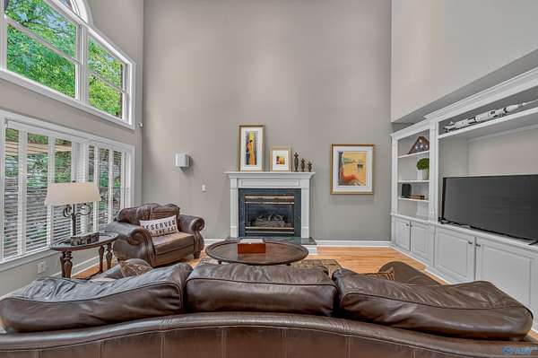 Beautiful house nestled on Huntsville Mountain. Private & serene woodlands for nature lovers offers a small cave, natural stone bench, view of Jones Valley & Rocket. Home features 5BR/4.5BA, hardwood floors main level, plantation shutters & custom blinds. Gourmet kitchen, Sub-Zero fridge, GE double ovens, Viking microwave/convection, wine cooler, custom pantry. Primary suite features California Closets. 5th BR can be an office. Family rm wired for surround sound. New roof, attic fan (2025). Garage a 2.5 car w/lifetime epoxy flooring & Chamberlain opener. Attic &walk-in crawlspace storage. Enjoy living in a highly desired neighborhood, great schools, close to shopping, dining, med