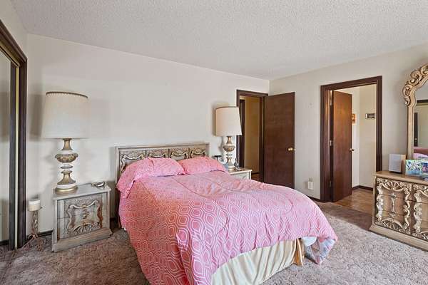 - Breakfast Bar, Built-In Features, Double Vanity, Kitchen Island, Laminate Counters, Primary Downstairs, Shower/Tub Combo