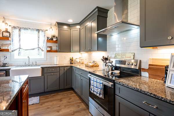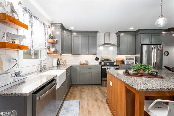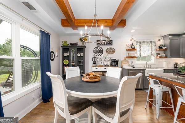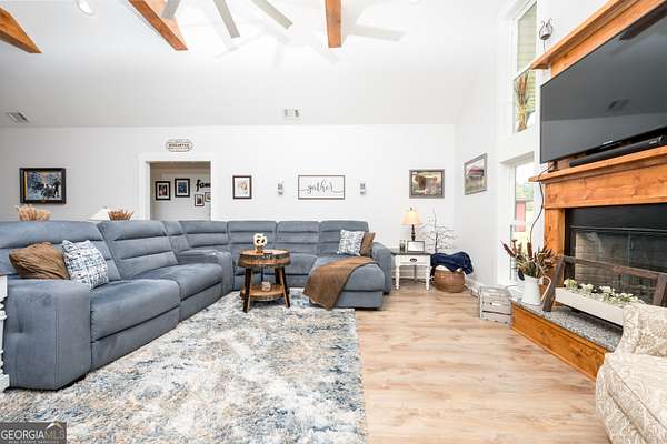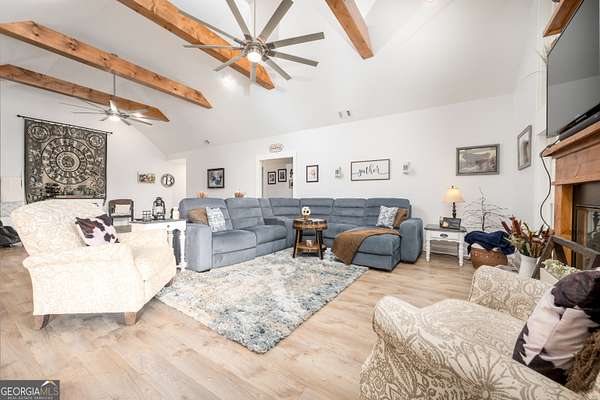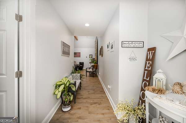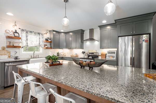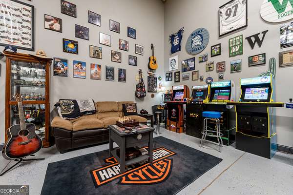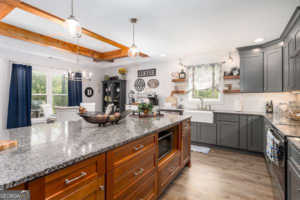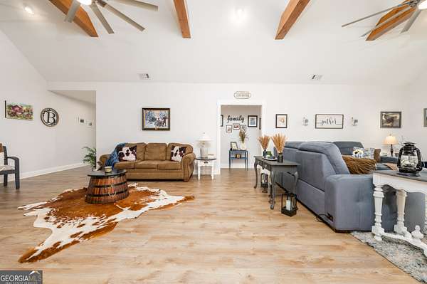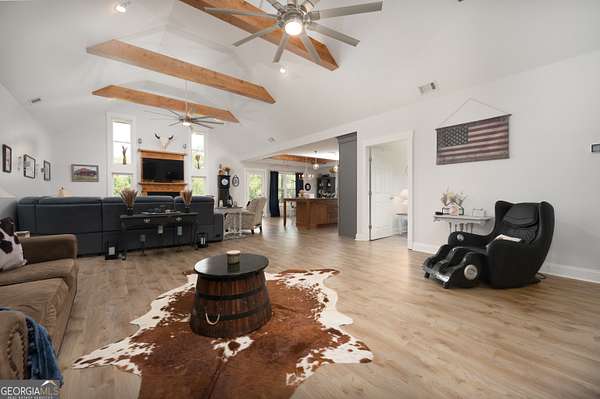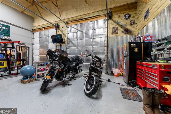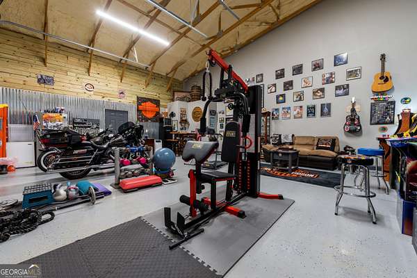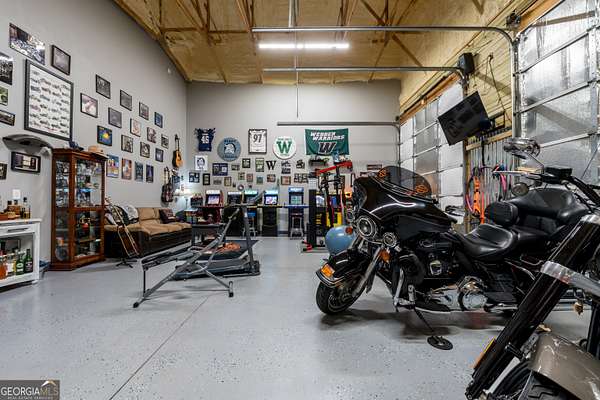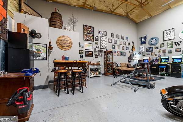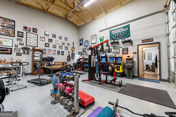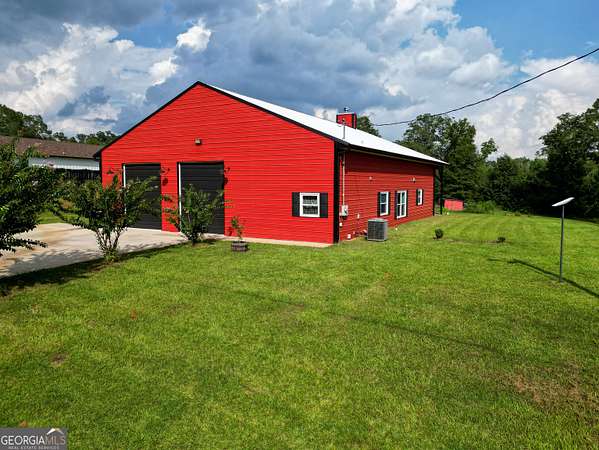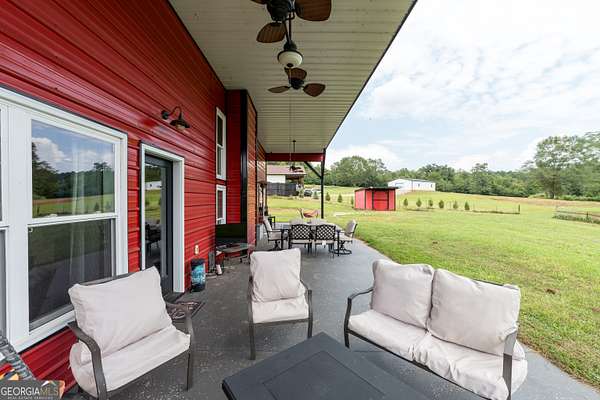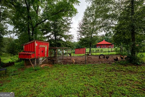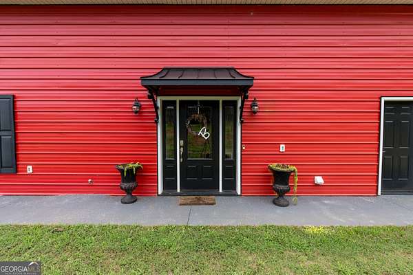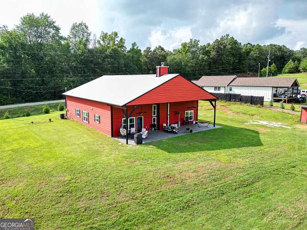 Nestled on 5.01 private acres, this beautiful Barndominium retreat offers an unparalleled blend of luxury and country charm. Located just 20 minutes from downtown Athens and the University of Georgia, and 20 minutes from Commerce, this property offers privacy, exceptional craftsmanship, and endless possibilities. The heart of this home is the spacious open-concept living area, featuring vaulted ceilings with exposed wooden beams, a wood-burning fireplace (with gas hookup) with cedar accents, and a stunning kitchen with a large granite island, farmhouse sink, floating shelves, and soft-close cabinetry. The main-level master suite is your own private retreat, with a luxurious bathroom featuring double vanities, a soaking tub, and a custom tile shower. Two additional bedrooms and a full bath are located on the opposite side of the home, providing privacy for family or guests. Step outside and take in the beauty of your 5 acres from the covered back patio, complete with two ceiling fans and gas & water lines ready for your future outdoor kitchen. The property also features a chicken coop, goat barn, storage shed, shooting range and scenic trails to explore. An acre+ of the land is fully fenced with three gates, including a solar-powered entrance gate-ideal for pets, livestock, or creating your own private sanctuary. The real showstopper? Besides the amazing sunsets, is the massive garage space! Currently serving as a gym, arcade, bar, and flex space, this unique area offers endless potential. Whether you're looking to run a business, store equipment, or create your own dream setup, this versatile space has you covered. It's perfect for entrepreneurs, hobbyists, or anyone seeking room for expansion. Conveniently located with easy access to schools, shopping, and major roads, but still private with lots of potential. If you're looking for the perfect balance of luxury, country living, and proximity to everything you need, this one-of-a-kind barndo is a must-see. Schedule your private tour today!