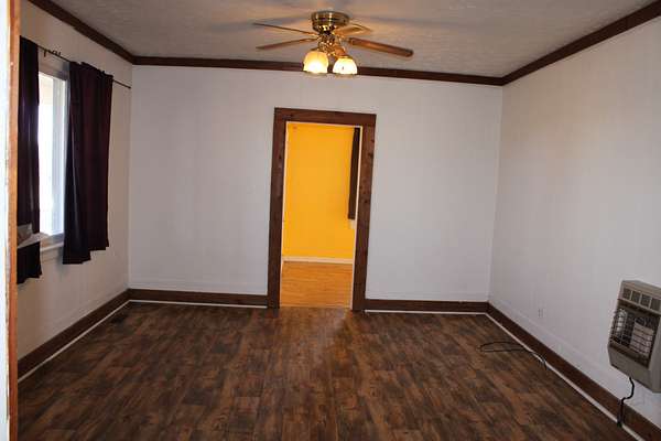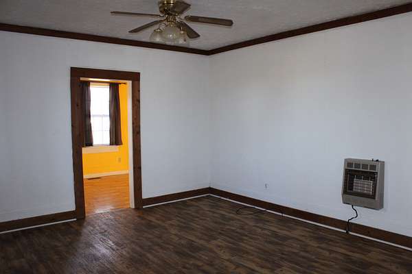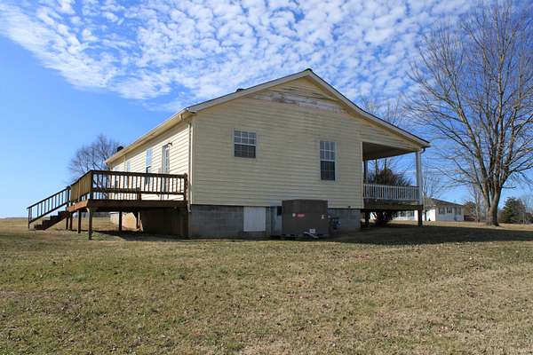 Absolute Online Auction. Bidding Opens March 22 - April 12. 1,070 sq ft home on 4.78 acres with outbuildings and pond. Two bedrooms, one bath, living area, eat in kitchen, large covered wrap around porch. Updated electrical panel. City water and central heat and air. No current septic records found, but has a newly identified 4 bedroom soils area. Additional adjoining 2.68 acres with large barn and 4 bedroom soils area selling as well.