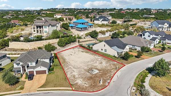 Travel north on Highway 183 and make a left turn onto Crystal Falls Parkway. From there, take another left onto Cantina Sky. Your next turn will be a right onto Legend Trail. After you turn onto Legend Trail, prepare to make another right almost immediately onto Nokota Court. The destination will be the large, vacant corner lot on your immediate left, exactly as shown in the photo.