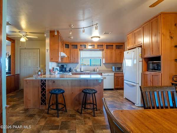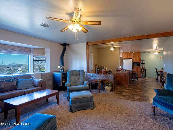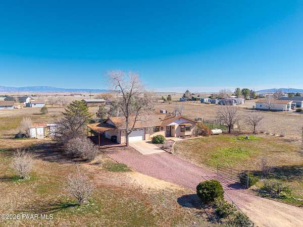ATTN - NO-HOA FREEDOM SEEKERS | FAMILIES NEEDING SPACE | HORSE & ANIMAL LOVERS | RV & TOY OWNERS!!!These views are the star. Wide-open skies, sweeping panoramic scenery, and 2.5 fenced, gated acres offer privacy and freedom--just about 20 minutes from downtown Prescott. Horse-zoned with room to roam and no HOA. Bring the RVs, quads, and toys. Knotty alder kitchen cabinets add rustic charm, while fenced garden beds, a chicken coop, and a flagstone patio are perfectly positioned to take in the views. Remodeled in 2012 with a new roof just installed in Feb, 2026, plus space to add a workshop or RV garage.