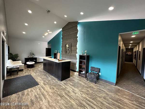 Rare find, 2 miles up KGB, highway frontage, over 5000 feet of first class office space, perfect for medical or administrative offices. 10 foot ceilings throughout, landscaped, gated and paved. Would make a perfect homeschool office, insurance agency, dental office, counseling center, anything where quiet enjoyment of pristine commercial office space is desirable.