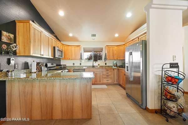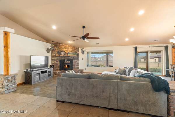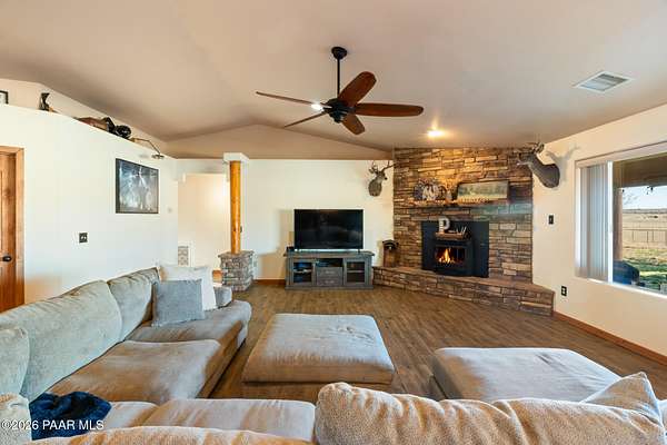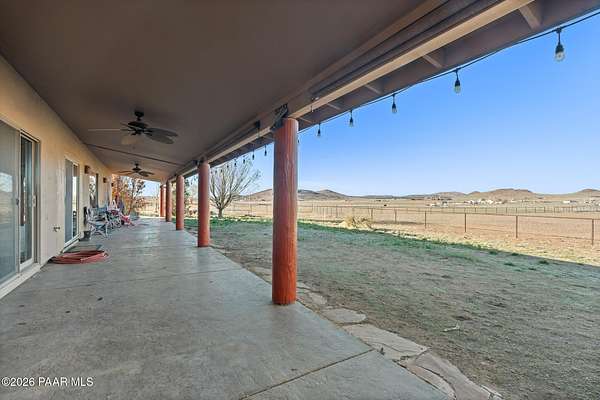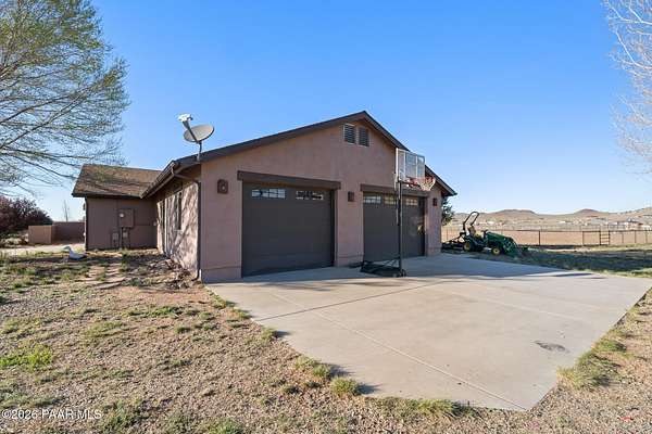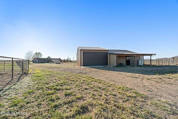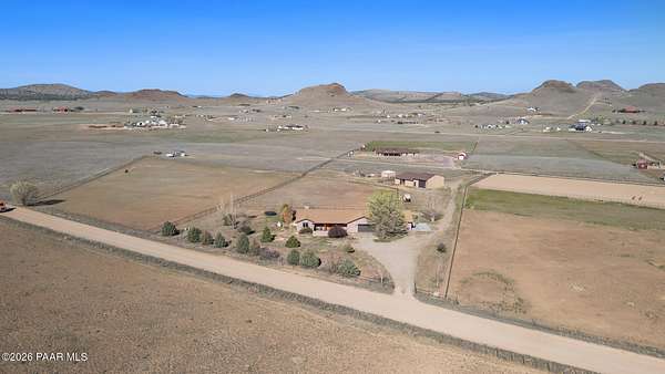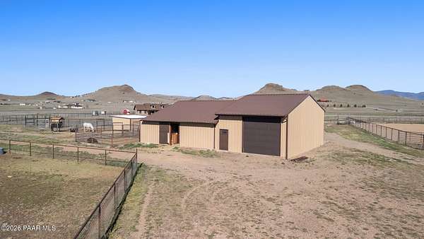 Welcome home to your dream ranch property! This home is an Equestrian's dream estate on 7+ fully fenced acres in the highly sought-after Haystack Ranches, offering breathtaking views, privacy, 10+ cars worth of garages and shop, and multiple fully fenced pastures and turnouts for all of your hobbies!This true ranch-style home features 3 bedrooms, 2 baths, an office/den, and a spacious open floorplan with vaulted ceilings, real wood accents, granite countertops, oversized bedrooms, and a luxurious soaking tub. Enjoy indoor-outdoor living with front and rear patios, stunning sunset views, and a covered back patio complete with spa hookup overlooking your acres of pasture!Designed for both comfort and functionality, the property includes a massive 6 car attached garage, plus additional shop garages accommodating 4+ vehicles for a total storage of 10+ vehicles. The equestrian setup is exceptional with over 4,000' of pipe fencing with no-climb wire, multiple pastures, turnouts, irrigation rights, and a strong 18+ GPM well.The primary enclosed barn offers 3 stalls with runs, automatic/heated waterers, tack room, and hay storage. A second set of 2 covered stalls provides even more flexibility for animals or equipment.No HOA (road-maintenance agreement of $500/year), well-maintained grounds and true Arizona ranch living at its finest! This is a rare opportunity to own a fully equipped horse property with space, function, and unbeatable location.As a bonus, access to endless riding trails, this property is just minutes from State Land, National Forest, the Verde River, and Sycamore Canyon.
