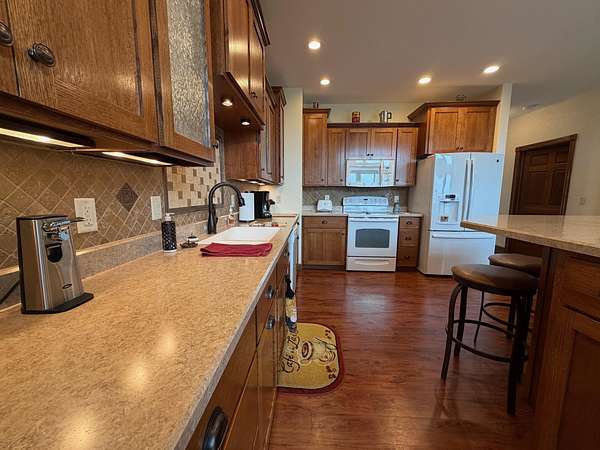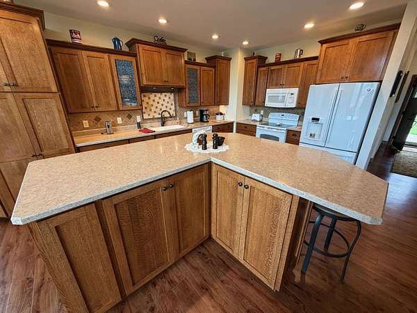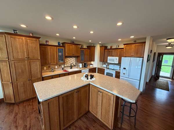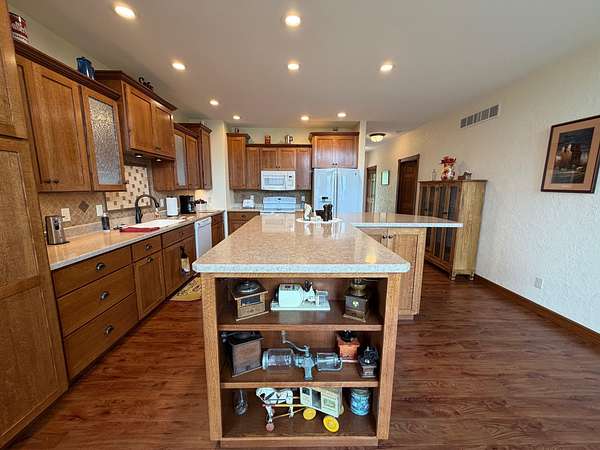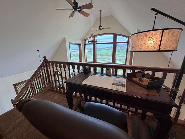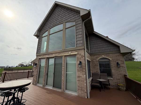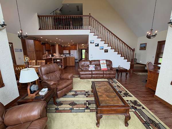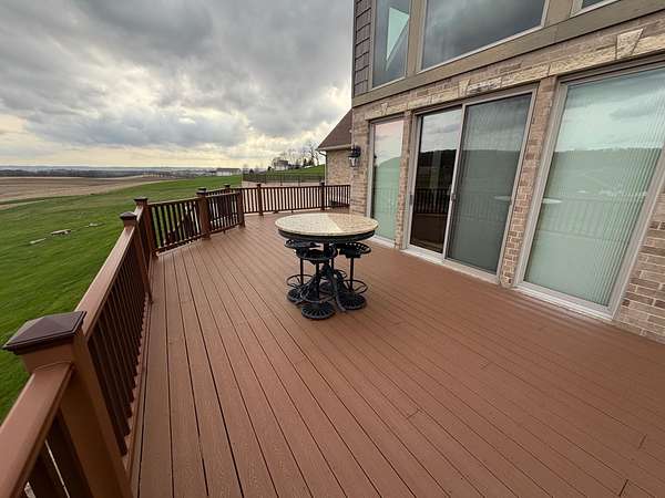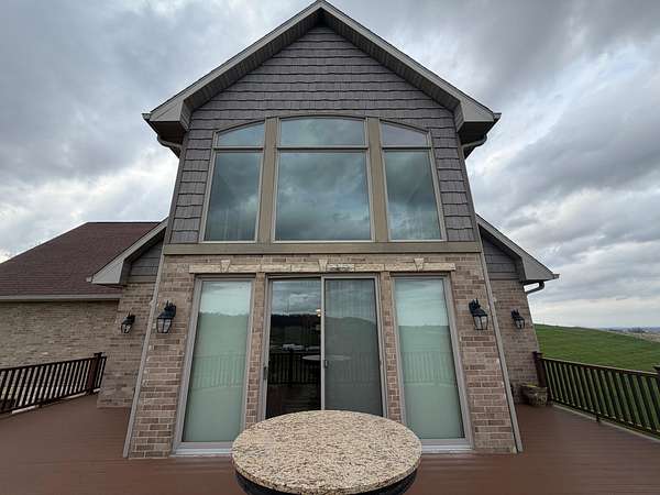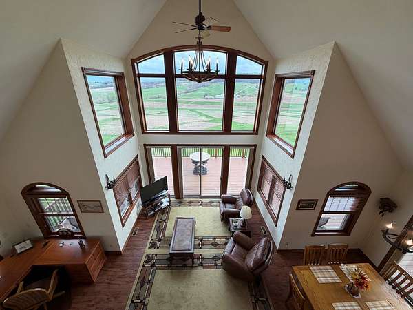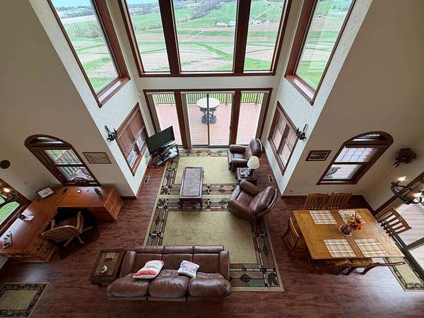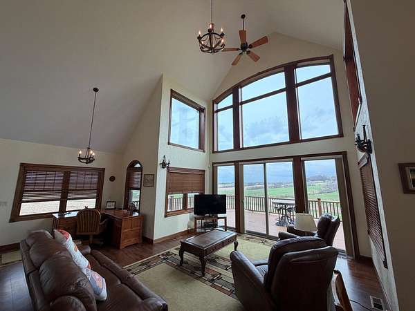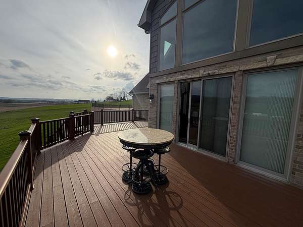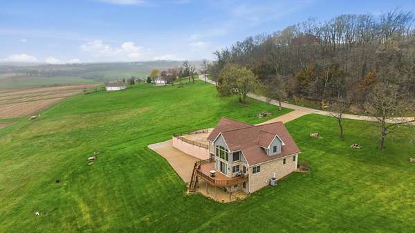 Hurry in to see the BEAUTIFUL COUNTRY OASIS that is 16250 Panoramic View! Staying true to it's name, this property offers breathtaking panoramic views of the countryside in the gorgeous city of Sherrill, IA! But that's just the beginning, this 1 1/2 story brick/stone/shakes home was built in 2013 and features 3 Bedrooms (master suite on main floor with shower and walk-in closet), 2.5 Baths, 4 Car Garage (2 up and 2 down, all with separate garage doors, and with interior steps going from one garage to the other) a HUGE driveway that not only goes to your 2 car stall up top, but also wraps around to the back side where you will find your additional 2 car garage, and all sitting on 2.2 acres of wide open land! Heading into the main floor you will fall in love with the big kitchen that boasts quarter sawn custom cabinets, a big center island with barstools, a formal dining area, astonishing living space that proudly features 2 story high ceilings (with stunning large windows that let you take in the view right from your couch) and 2 walk-outs right from your living room or dining space out to the awesome composite deck that shows you just why they named it the way they did! The rest of the main floor fills out with your master suite (complete with double vanity, shower, and walk in closet), main floor laundry room with half bath for convenience, and a nice little office nook to round everything out! Now head upstairs to your upper level family room, 2 more large bedrooms, and another full bath with tub/shower! AS a BONUS - The basement is drywalled with electrical ran as needed, has a walk-out to the back yard, and it is plumed and ready for another bathroom and bedroom if one desires! This home is so unique word's cant full illustrate it's beauty. Call your agent today to see this one of a kind property in person! (Home is sold fully furnished minus 2 sentimental pieces)