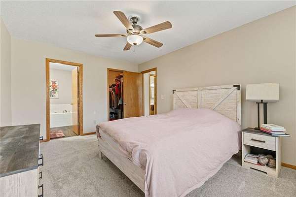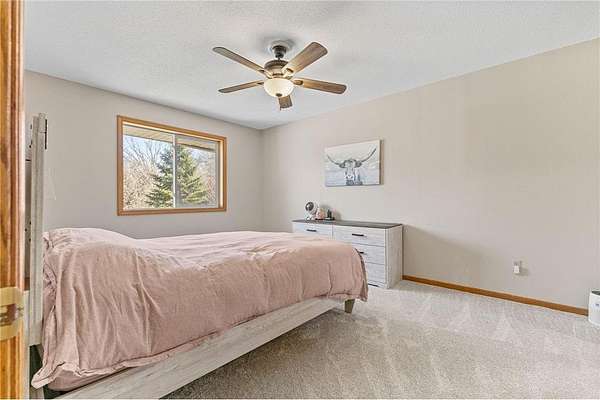 Nestled on a private 2-acre cul-de-sac lot in Ramsey, this beautifully updated 4 bedroom, 2 bath four-level split offers the perfect blend of space, comfort, and modern updates. The main level welcomes you with soaring vaulted ceilings, neutral tones, abundant natural light, and an open-concept layout. The charming kitchen features rich wood cabinetry and stainless steel appliances, flowing seamlessly into the informal dining area with a walkout to one of two decks, ideal for enjoying the peaceful backyard and fenced-in yard. Upstairs, you’ll find two generous bedrooms, including an owner’s suite complete with a private full bath and walk-in closet. The lower level expands your living space with a cozy family room featuring a fireplace, along with a third bedroom. The unfinished fourth level offers a fourth bedroom plus additional space ready for storage or your finishing touches. This home has been thoughtfully updated with all new flooring, a freshly painted interior, and a new roof in 2025. Enjoy peace of mind with a compliant well and a septic system scheduled for replacement. The attached 3-car garage adds convenience, while the prime location provides easy access to the Elm Crest Park trail system and nearby bike trails, perfect for outdoor enthusiasts. A rare opportunity to enjoy acreage, privacy, and updates all in one exceptional home!