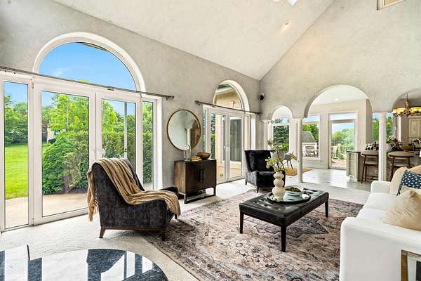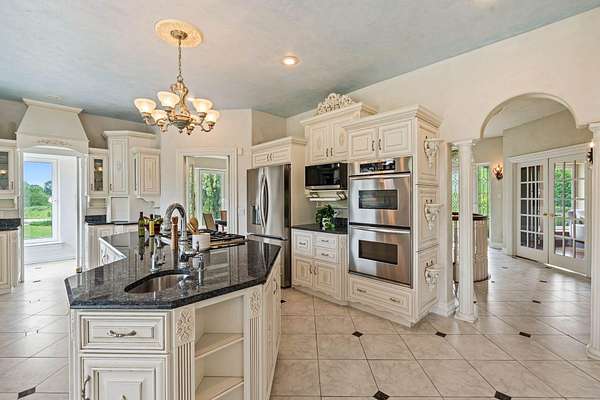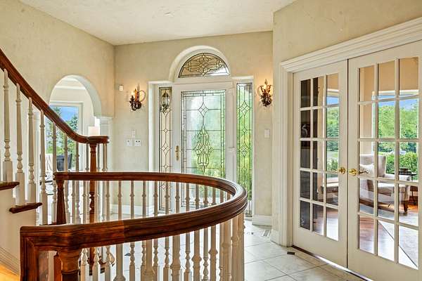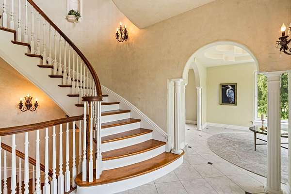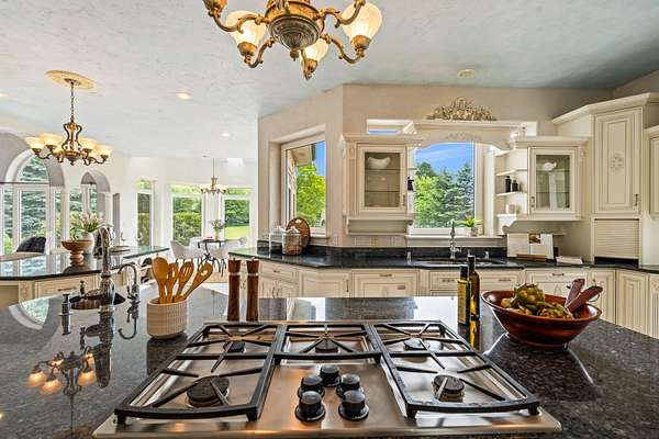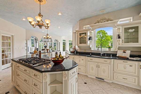 STUNNING Nearly 7,000 Sq Ft CUSTOM Masterpiece! 3 Full Levels of Living w/AMAZING Attention to Quality & Detail. No Expense was spared in this 5 BR, 5.5 BA European Country Style Retreat set on nearly 2 Picturesque Acres. Walk in to view a Millwork Masterpiece Open Spiral Staircase, Volume Ceilings, Custom WW, CT, Brazilian Cherry Flrs, Granite Ctrs, Vaulted & Tray Ceilings, Walls of Windows & More. EXQUISITE Estate Sized SUNNY Kitchen is the Heart of this Home. GORGEOUS 1st Flr Library, LR, FR & DR too. HUGE Ipe Deck! Master Suite w/2 Sided GFP, Patio & BEAUTIFUL BA. 3 More BRS w/ Lofts + 2 more BAs & a 2nd Flr Laundry Rm. Exposed Walkout LL features complete Guest Quarters w/an En-Suite BR/BA, 2nd Full Kitchen, Exercise Rm, Play Rm, Dance Studio & NEWLY Finished 23' x 37' Media Rm!