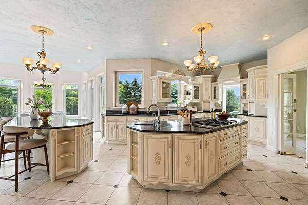 - 2 or More Fireplaces, Cable TV Available, Central Vacuum, Gas Fireplace, High Speed Internet, Kitchen Island, Pantry, Skylight, Split Bedrooms, Vaulted Ceiling(s), Walk-In Closet(s), Wet Bar, Wood Floors