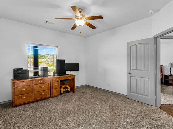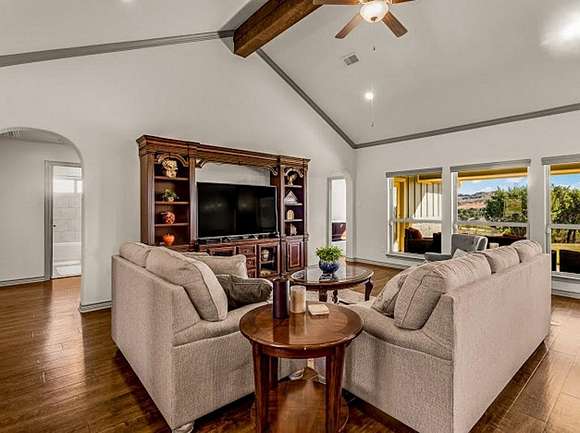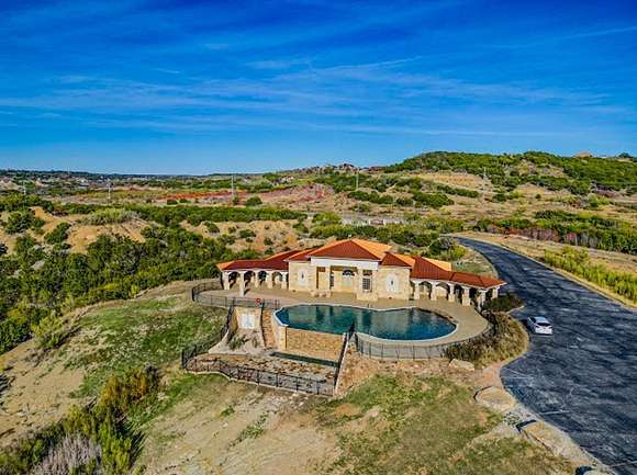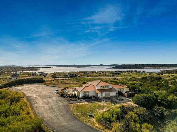 Nestled within the prestigious gated community of The Hills, this exceptionally quiet single-story home offers privacy, comfort, and modern amenities on over 8 acres of pristine land. The home boasts a beautifully designed interior with quartz countertops, a high vaulted ceiling accented by an elegant beam, and durable Class 4 roofing for added peace of mind. Energy efficiency and convenience are at the forefront with programmable sprinklers, a fully insulated attic, and a comprehensive security system. For those in need of additional space, the property features a versatile outbuilding equipped with a garage door and loft, perfect for a workshop, storage or golf cart, atv, and lawnmower parking. Both front and back have covered patios for outdoor relaxation. Residents of The Hills enjoy exclusive access to top-notch amenities, including a clubhouse, infinity pool, workout center, boat launch, and boat slip, making it easy to relax, stay active, and enjoy nearby Possum Kingdom Lake.