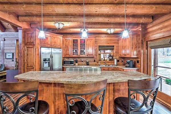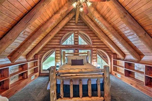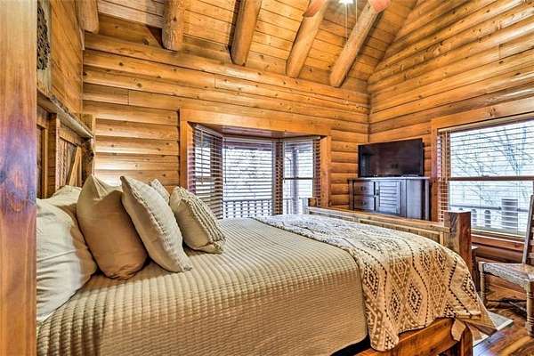 Looking for a Beautiful Beaver lake view home without all the restrictions? You've found it! This Custom built timber frame cedar "Real Log Home" is located on 7.88 UNRESTRICTED acres which allows you to use it as a Primary residence, or if using it part time, you can rent it out as a VRBO for extra income. The property is being offer complete with all furnishings, fixtures & appliances so you can begin your Lake Life immediately after closing. The home is currently 3350 sq.ft., but could easily be increased. There are two large unfinished areas you enter from the outside on the lower level which could be made into more bedrooms or living areas with heat and ac available to tie into. You'll also enjoy the large decks and fire pit while taking in the beautiful views of Beaver Lake. Starkey marina is only 2.4 miles away for all your boating needs. This property is currently used as a nightly rental and cannot be shown when rented so book your showing ahead. Additional info is at: www.EurekaSpringsVacationRental.com