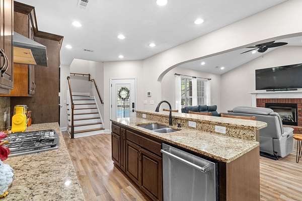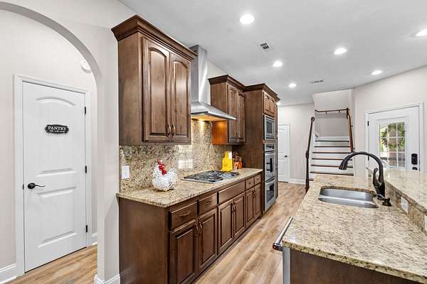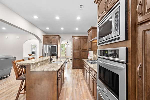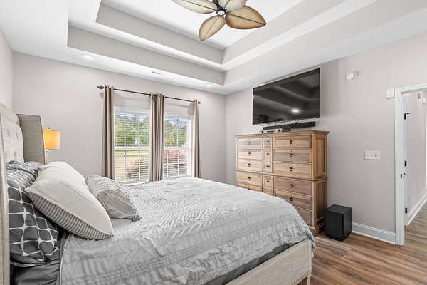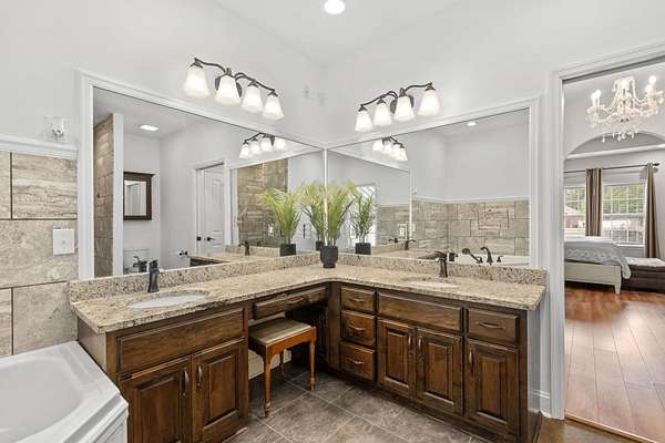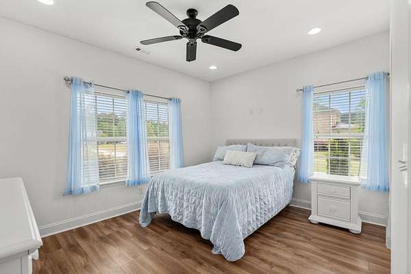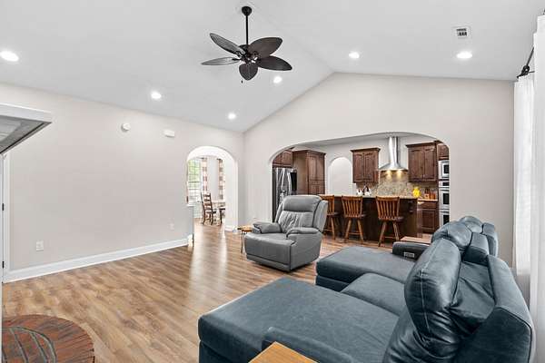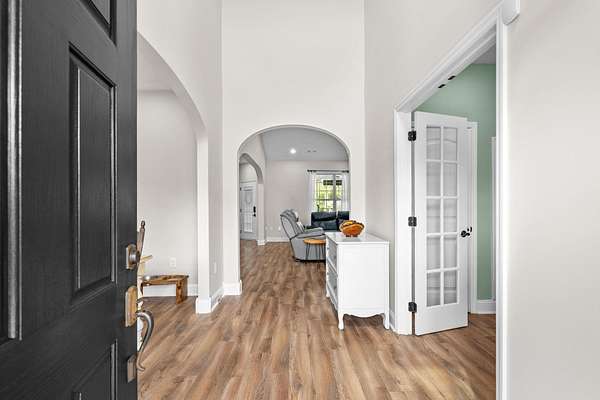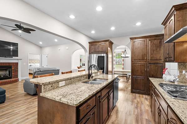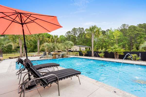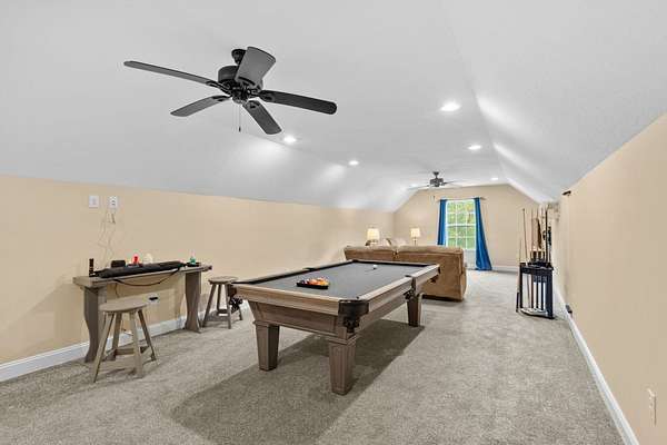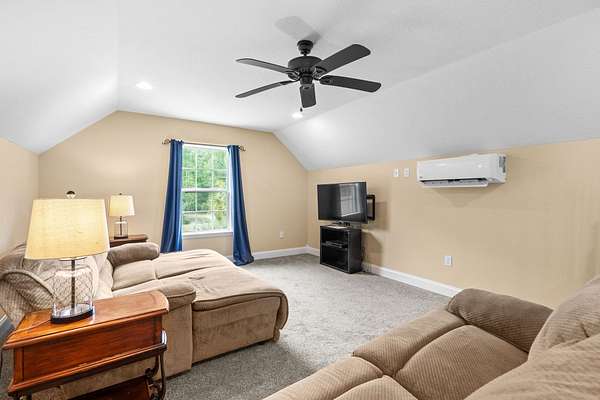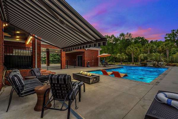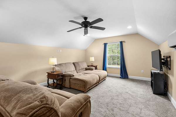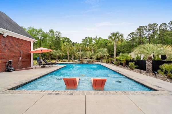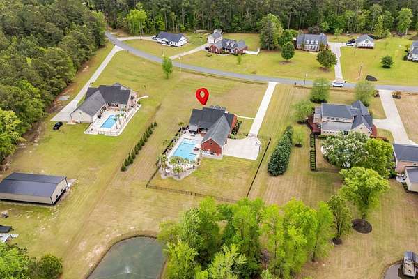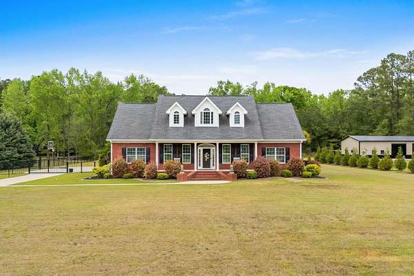 Dream On! This custom built all-brick 3bedroom / 2.5-bath home on 2.46 acres offers the perfect private retreat. A long driveway leads to a welcoming front porch, foyer with cathedral ceilings, a formal dining room, and a private office with French doors and gun safe. The gourmet kitchen features abundant cabinetry and a breakfast bar, opening to a vaulted living room with a fireplace, ideal for relaxing or entertaining. Guest bedrooms share a Jack-and-Jill bath with separate sinks, while the primary suite boasts tray ceilings, dual walk-in closets, and a luxurious bath with a tiled shower, soaking tub, and L-shaped vanity. A spacious laundry room and an oversized upstairs bonus room add even more flexibility to this fantastic home! Outside, enjoy a covered porch with a built-in grill station overlooking the oversized saltwater in-ground pool, lush tropical landscaping, hardscapes and fencing! Enjoy landscape lighting, water features and surround sound to elevate your back yard oasis! The property also includes a double carport with outlets, a large workshop space and room for storage. Enjoy your very own private pond, fully stocked with fountain! Additional features include: wood flooring, recessed lighting, a tankless water heater, attic storage, whole-home generator hookup, RV-ready driveway power, pool heater / chiller, security system with cameras and a sunsetter remote control awning. With nearly 2.5 acres, no HOA, private pool and a pond - this one checks all the boxes! Plus convenient access to major highways, this home truly has it all. Arrange a tour today!