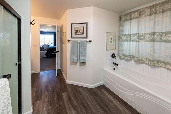 - Breakfast Bar, Double Vanity, Fiberglass Stall Shower, High Speed Internet, Linen Closet, Open Floorplan, Pantry, Primary Downstairs, Shower/Tub Combo, Smart Thermostat, Soaking Tub, Solid Surface Counters, Vaulted Ceiling(s), Walk-In Closet(s)