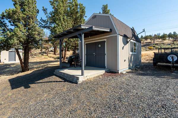 Highly upgraded single level home on over 2 acres w/a great room layout, unobstructed Mt Jefferson views, a shop, & insulated/finished hobby shed. Upon entering the home, you are greeted by vaulted ceilings in a great room space that separates the primary suite from both guest bedrooms while offering high end LVP flooring, a kitchen island, quartz counters, 2 pantries, & direct access to the large deck w/pergola. The primary suite has expansive built-ins, a slider to the deck, spacious walk-in closet & a double vanity bath w/soaker tub & stall shower. Both guest bedrooms are large enough for king-size beds & share a well laid out bath w/tub shower combination. The shop has a covered RV area, & the inside has ample space for all your storage & hobby needs. A detached & fully insulated hobby shed has AC, a covered porch, & attic storage & the well house has a generator hookup for the well along w/a shower/sink. Below the property there is quick access to the Deschutes & Steelhead Falls!