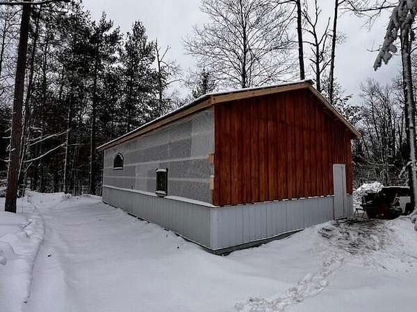 Discover the perfect canvas for your new up north cottage or home! This property boasts a newly constructed storage building crafted with sturdy Post and Frame Construction, meticulously placed upon a crawl foundation. Its exterior showcases a harmonious blend of finished wood and metal siding, crowned with a resilient steel roof, ensuring longevity and durability. Park your vehicle in the spacious garage that boasts 9x12 insulated garage door. Accessing this haven is effortless, thanks to the well-laid access drive. Inside find an open interior, beckoning your creative flair to transform it into your ideal living space. Furthermore, with the potential to be reclassified for residential use, pending the installation of essential utilities such as Septic, Well, and Electrical, this property offers versatility and opportunity. Crawl space has vapor barrier down. Adjacent power lines and access to fiber-optic internet infrastructure ensure seamless connectivity, catering to modern lifestyle needs with ease and efficiency. Size of interior 24x40 (960 sq ft).Enjoy what Wolverine has to offer! Close to Wildwood Lake, Snowmobile and ATV trails and lots of State Ground. (Note: Interior dimensions 24'W x 40'L) Call today.