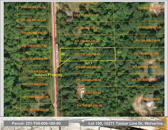 From Wolverine: Webb Rd East to Molineaux South to Lance Lake Rd East to Timber Line Dr South to Sign.